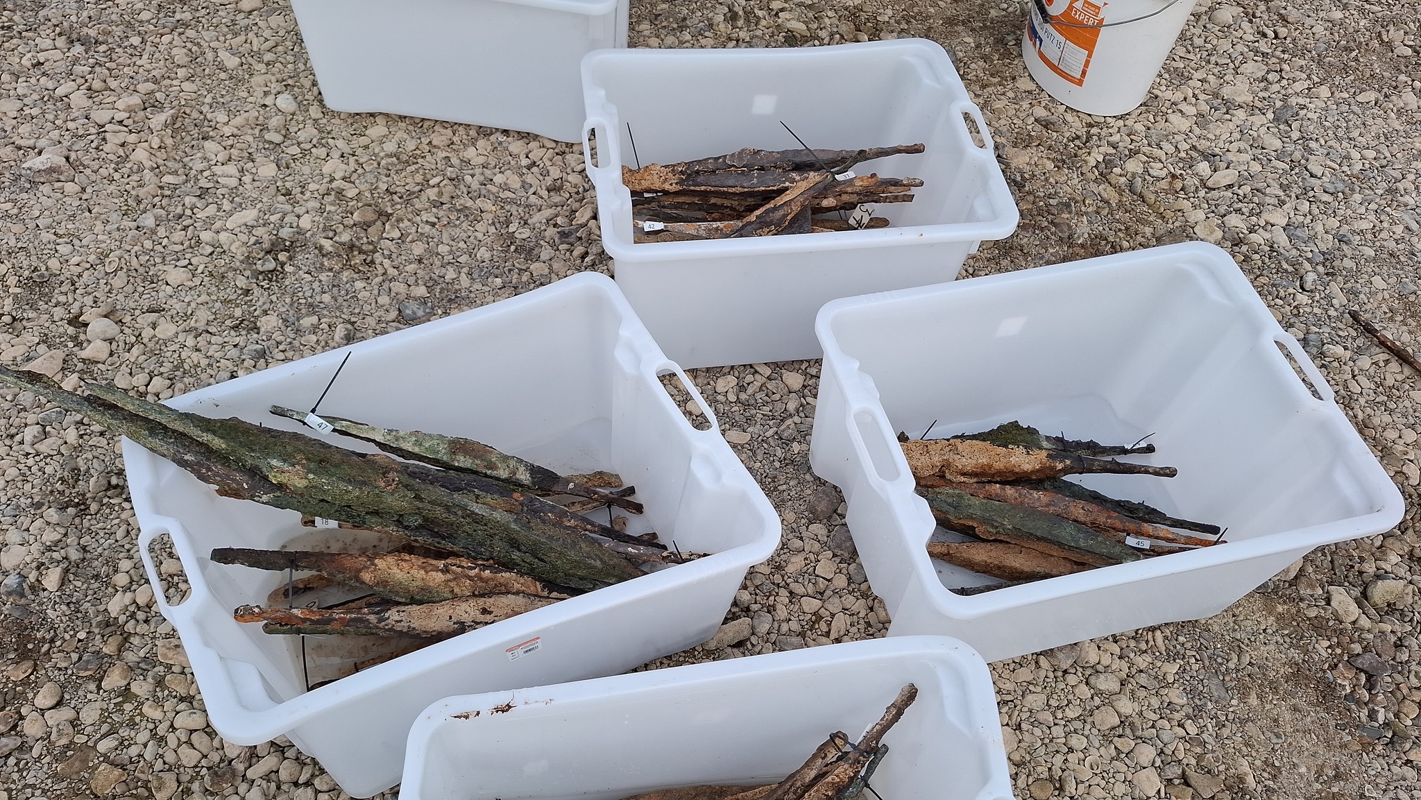 각 주괴는 신중하게 기록되고 추출된 후, 추가 보존 전에 부식을 방지하기 위해 증류수에 담갔다.