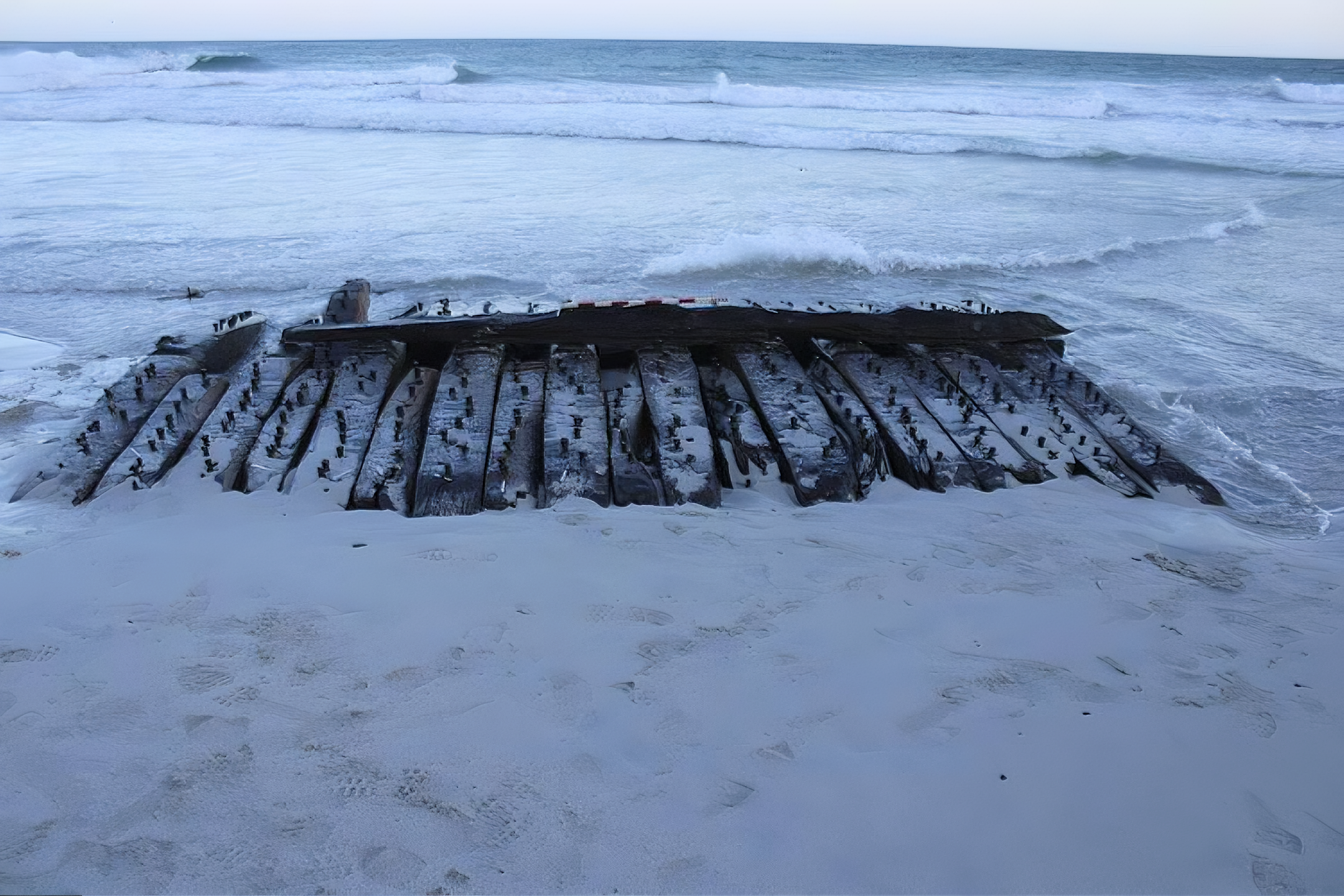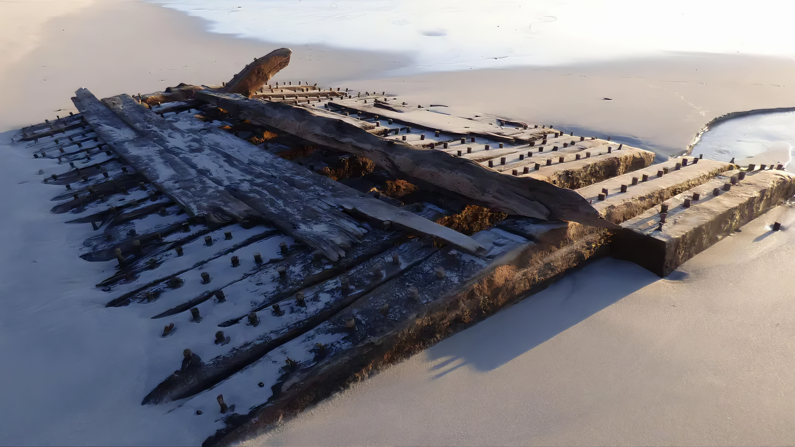 난파선 목재들은 작년 폭풍으로 해저에서 건져 올린 후 샌데이 지역 주민들에 의해 처음 발견되었다.