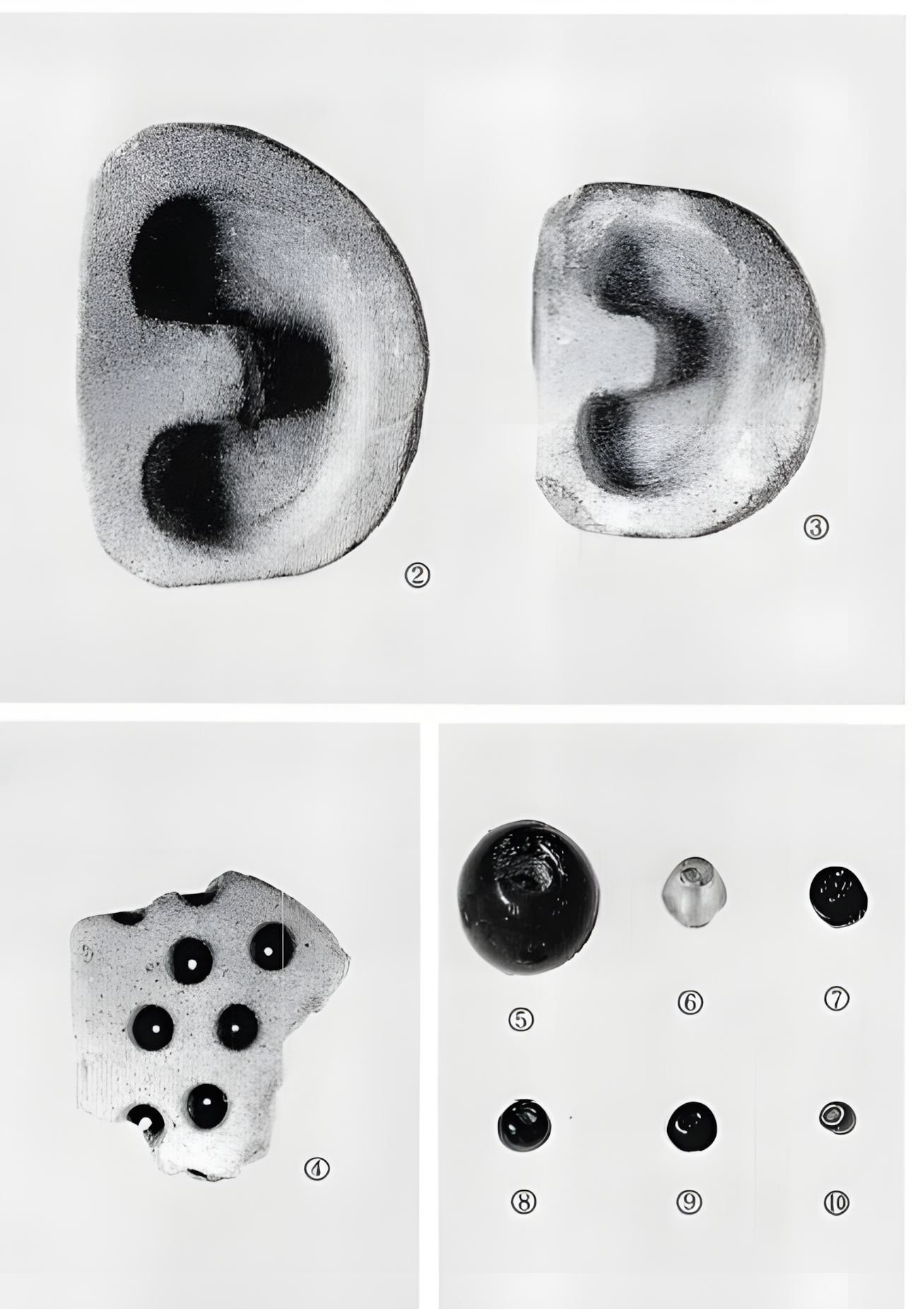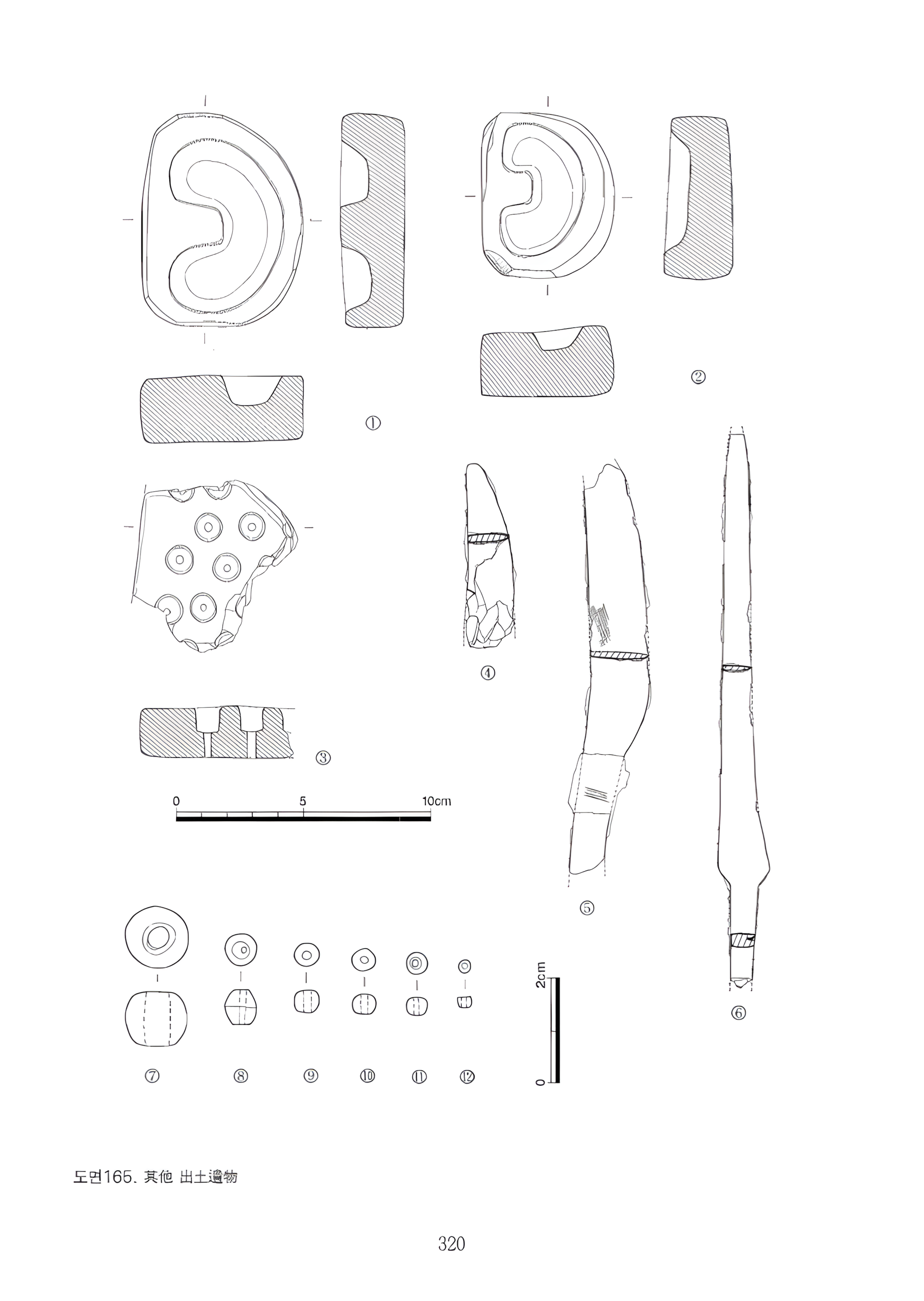 그리고 홈의 단면의('단면이'의 오타 같다.) 반원형에 가깝기 때문에 단면 원형의 곡옥을 만들려면 이와 같은 모양의 범 2개가 합범合范을 이루어야 될 것 같다.
