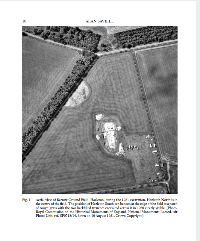 문제의 공동묘지는 Cotswolds-Severn이라는 지역에 있는 Hazleton North 라는 long cairn라고 하는데, 케언 cairn이라는 말은 고고학, 특히 영국이나 아일랜드 쪽에서 흔히 사용하는 말로 간단히 말해 돌무지 혹은 기념물로서 특히 그렇게 만든 무덤을 말한다. 그런 cairn이 long 하다 했으므로, 이런 돌무지 무덤이 기다란 줄을 이룬 모양이라, 왜 이리 부르는지는 저 기사에 첨부한 묘지 분포를 보면 안다.