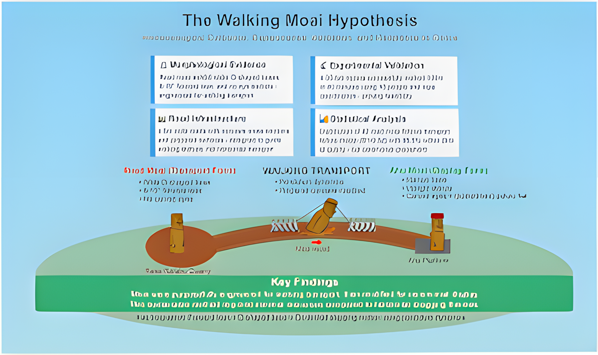 이러한 결과는 석상이 아후ahu라고 알려진 제단으로 "걸어가는" 모습을 묘사하는 라파 누이의 구전 전통과도 일치한다.