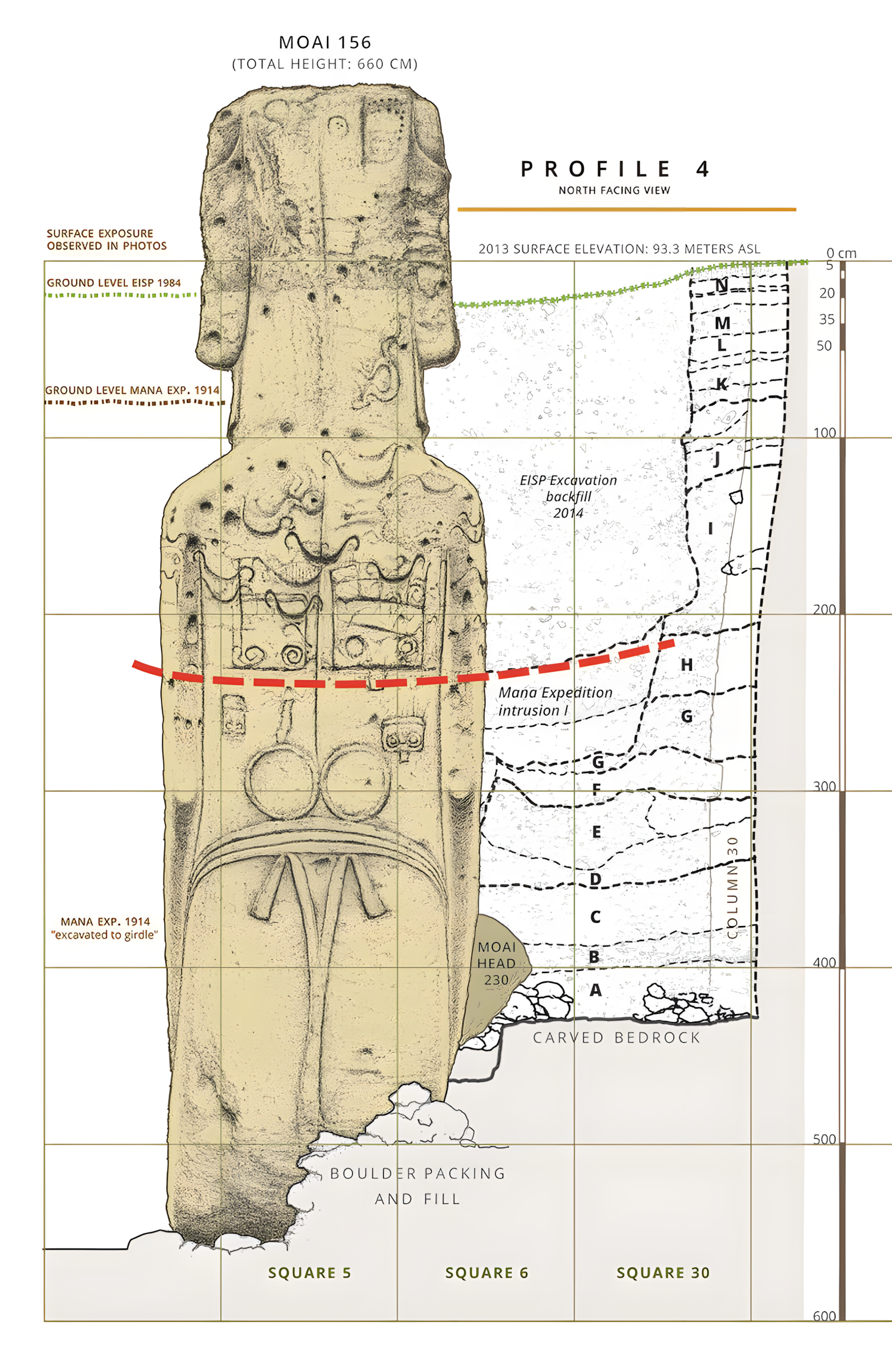 이는 석상이 광범위한 삼림 벌채를 통해 수평으로 이동되었다는 기존 가설과는 대조적이다.