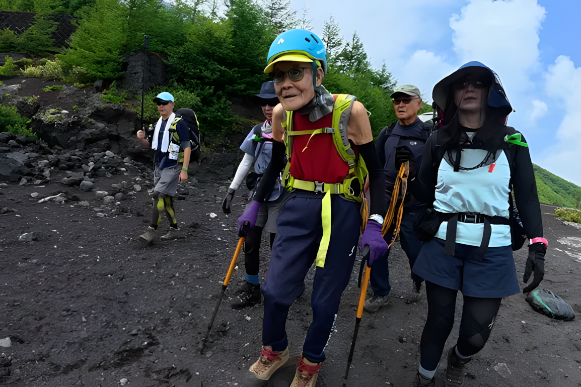 올해 102세 일본 남성이 후지산에 오른 역대 최고령 등반가로 기록되었다. 아쿠자와 고키치는 최근 친구와 딸 도움을 받아 일본에서 가장 높은 해발 3,776m 봉우리에 올랐다.