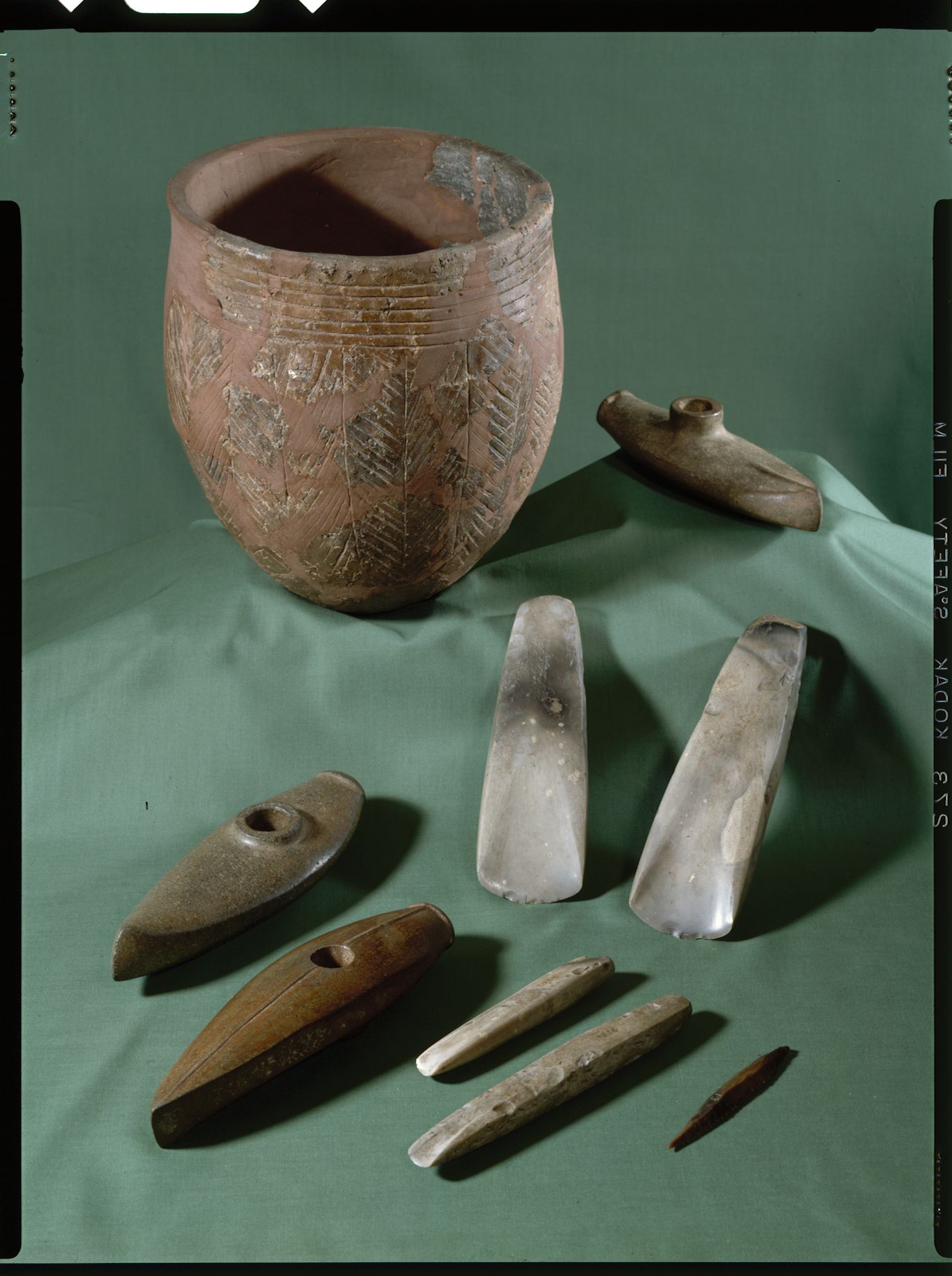 도끼들이 있고, 도기는 모가지 부근에 끈 무늬가 확인된다.