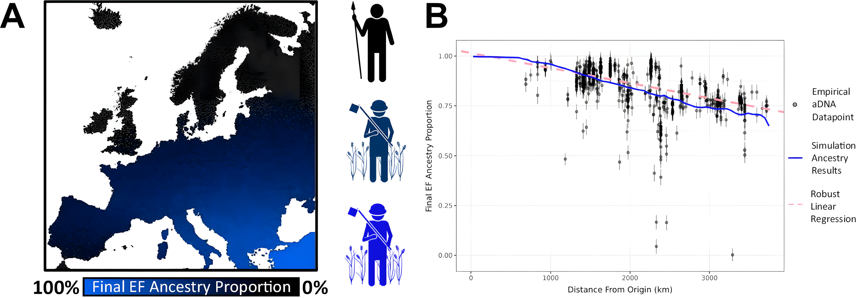 인구 이동, 성장, 문화적 학습을 시뮬레이션하는 모델을 구축하고, 고대 DNA에서 추출한 618명의 유럽 신석기 시대 사람들의 알려진 농업 확장 속도와 조상 데이터에 이를 적용함으로써, 연구팀은 이주와 문화적 수용의 기여도를 정량화할 수 있었다.