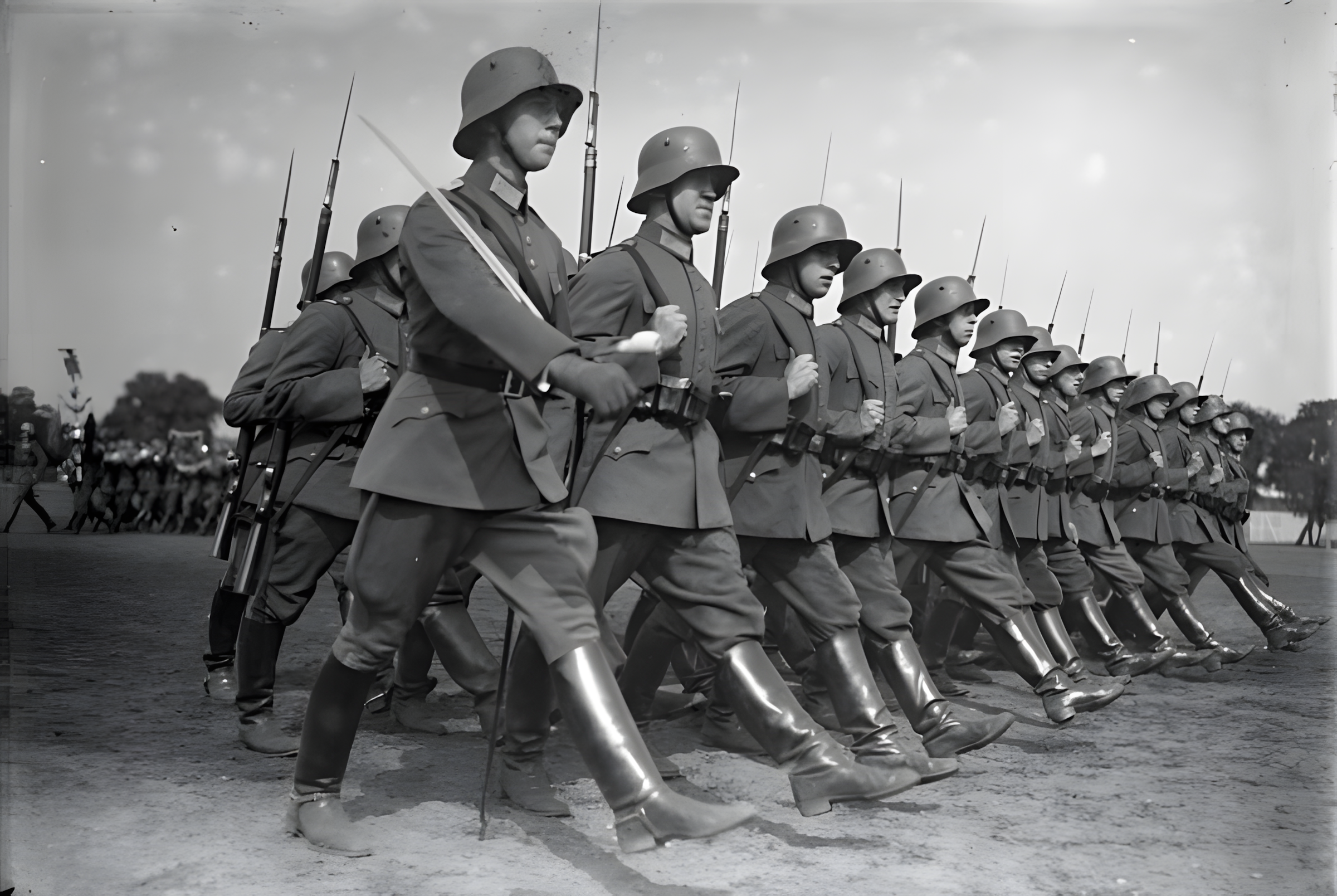 제1차 세계 대전에서 독일이 패배했지만 여전히 독일식 군사 조직 및 훈련 모델은 인기가 있었고 구스 스텝 역시 마찬가지였다.