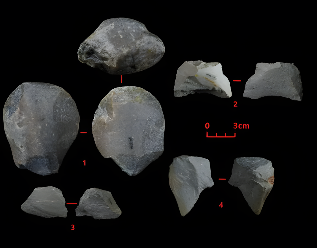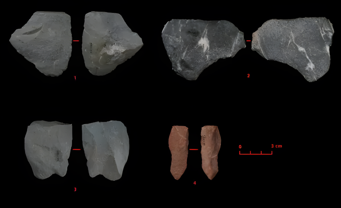The survey team also discovered stone artifacts on the lake's second terrace. The Lenghu No. 1 site, discovered in northwestern Qinghai Province, uncovered new cultural artifacts near Xiaoxian Lake during a survey of freshwater lakes in the Lenghu region. The site includes two cores, one fragment, one tool, and five flakes.