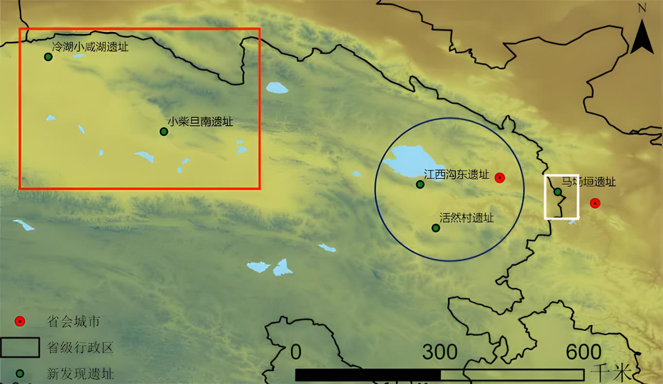Two prehistoric sites, Huoran Village and Jiangxigoudong, were discovered in the Gonghe Basin. Stone tools were primarily chipped, but also exhibited minor Neolithic elements. The Xiaochaidan South site in the Qaidam Basin is located on the second terrace southeast of Xiaochaidan Lake.