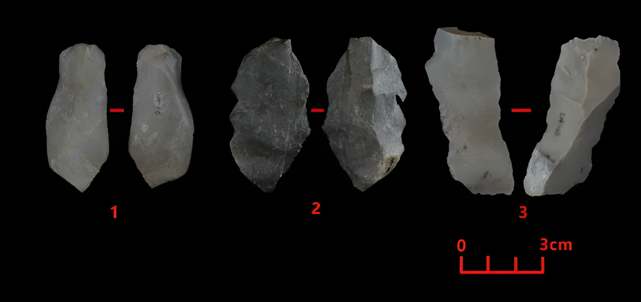 The survey team also discovered stone artifacts on the lake's second terrace. The Lenghu No. 1 site, discovered in northwestern Qinghai Province, uncovered new cultural artifacts near Xiaoxian Lake during a survey of freshwater lakes in the Lenghu region. The site includes two cores, one fragment, one tool, and five flakes.