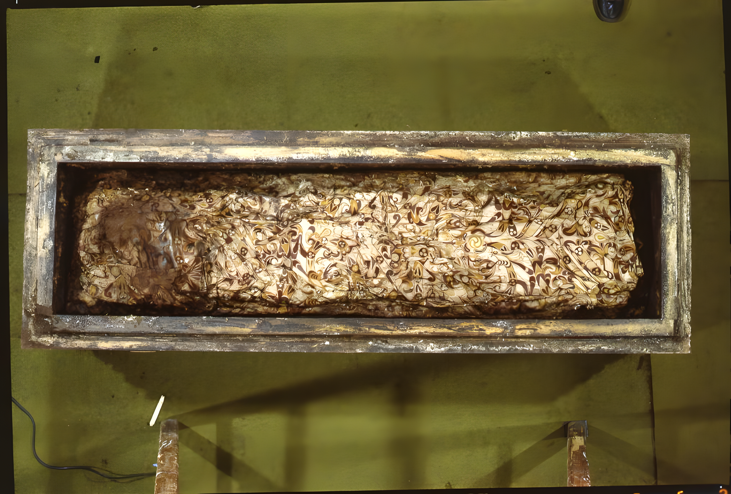 "비단이 보관 상태가 꽤 괜찮네. 빨리 관 뚜껑을 덮고 집안으로 옮겨라”
