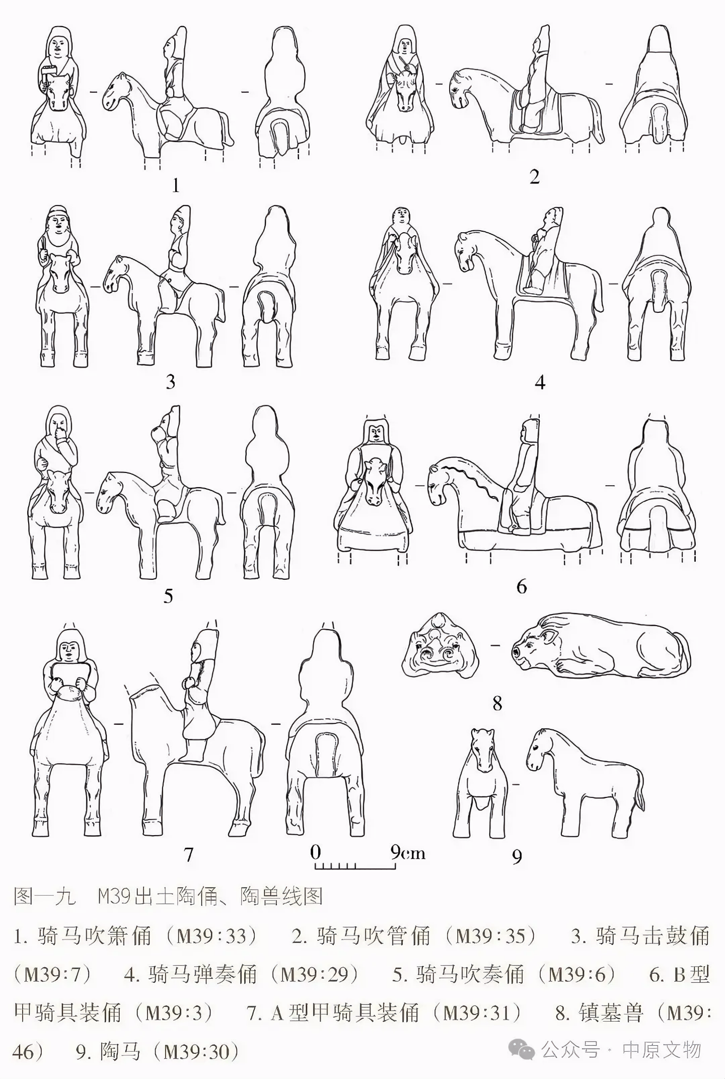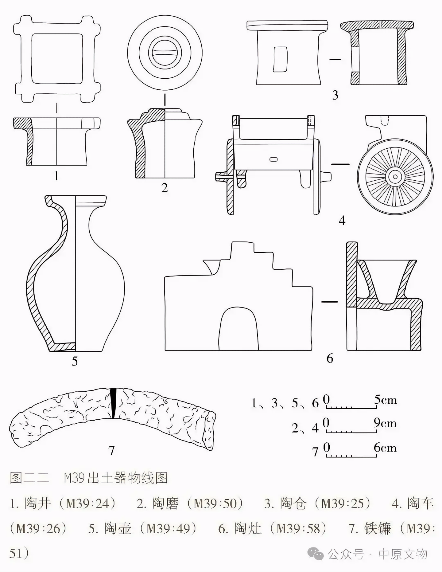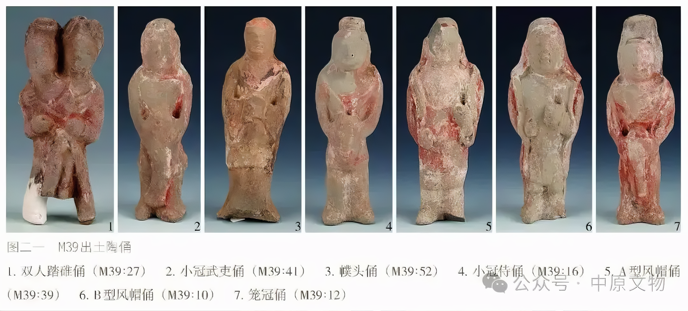 출토 도자기 66점(그룹)에는 용俑, 말, 낙타, 개, 닭, 수레, 우물, 화장실 등이 있으며 모두 흙으로 된 회색 도자기泥质灰陶다.