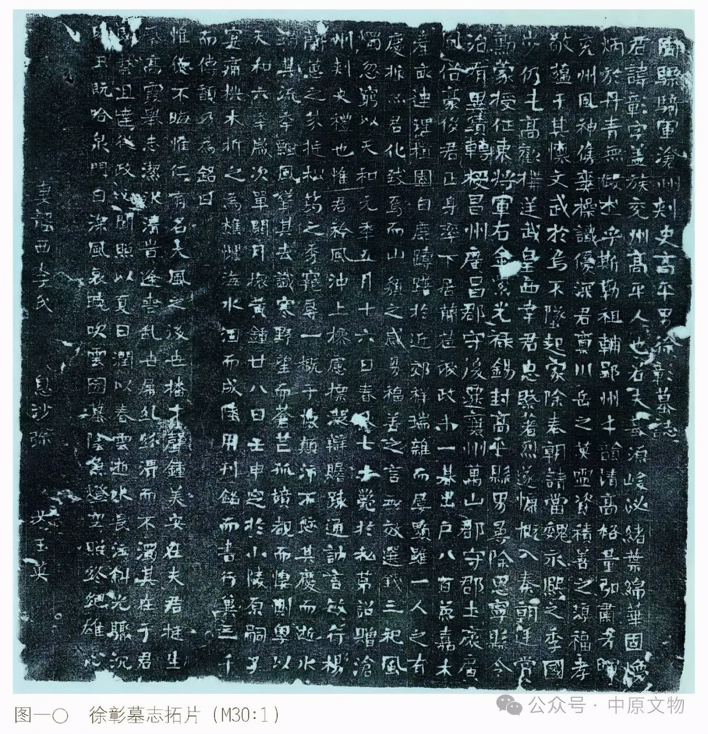 제목은 '주 표기장군 대도독 연주자사 고평자 서손 묘지周骠骑将军大都督兖州刺史高平子徐愻墓志'다.