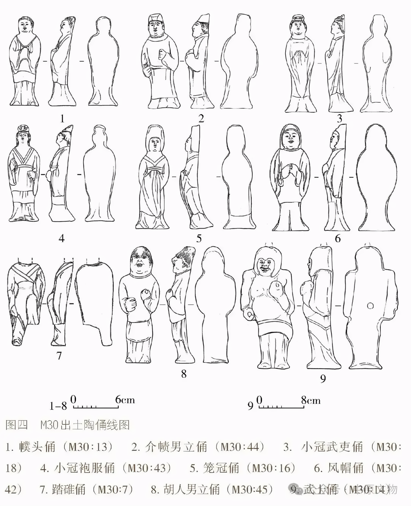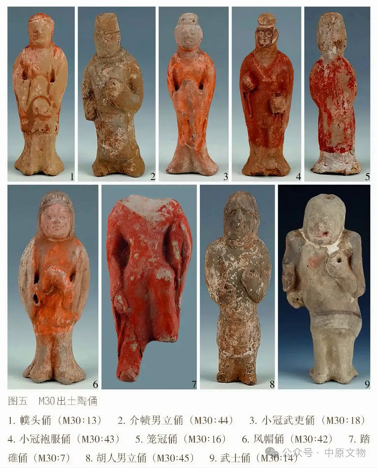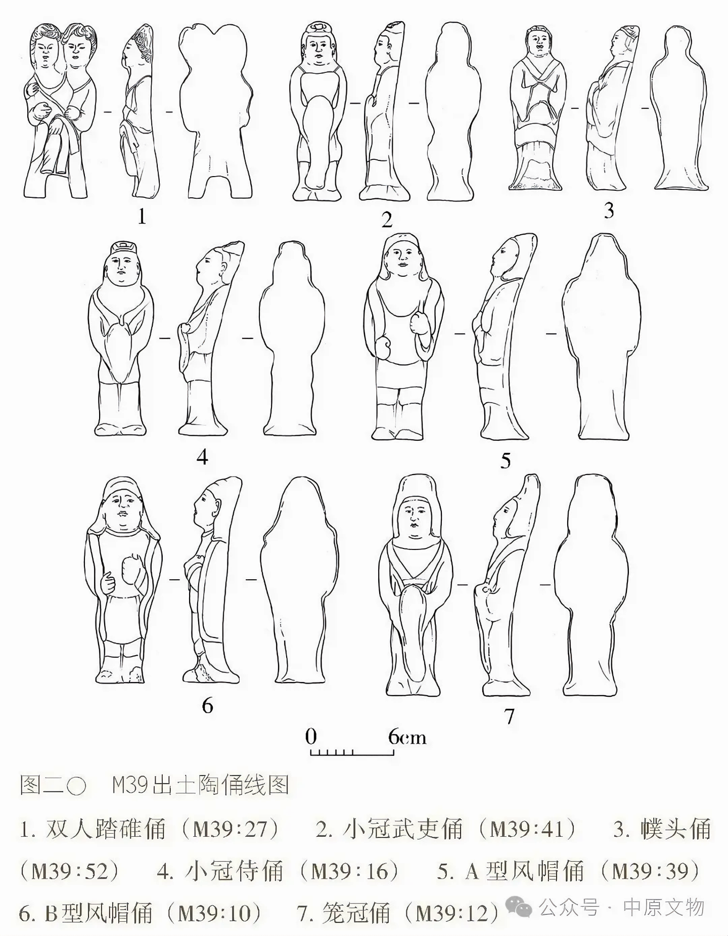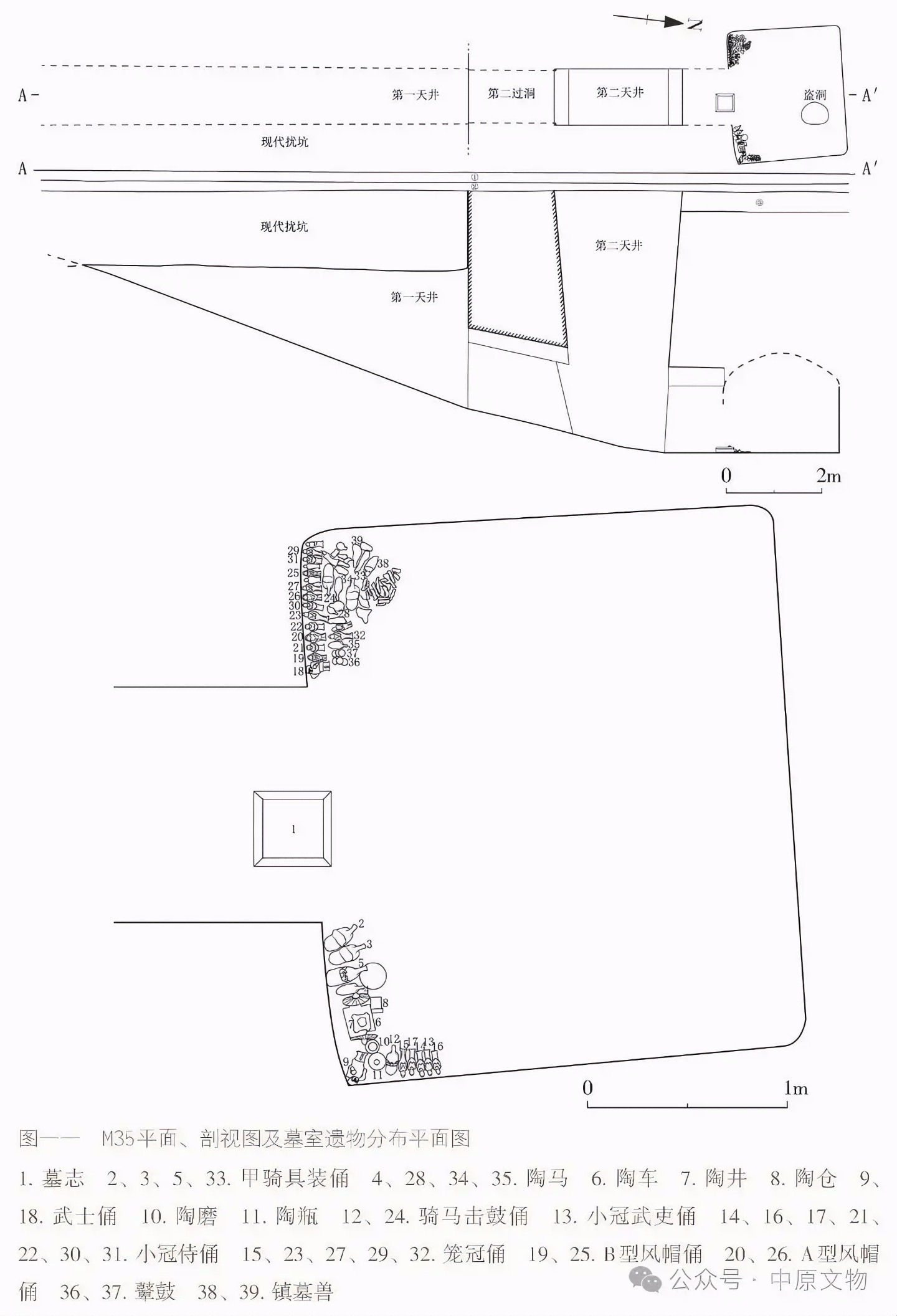 출토 도자기 66점(그룹)에는 용俑, 말, 낙타, 개, 닭, 수레, 우물, 화장실 등이 있으며 모두 흙으로 된 회색 도자기泥质灰陶다.