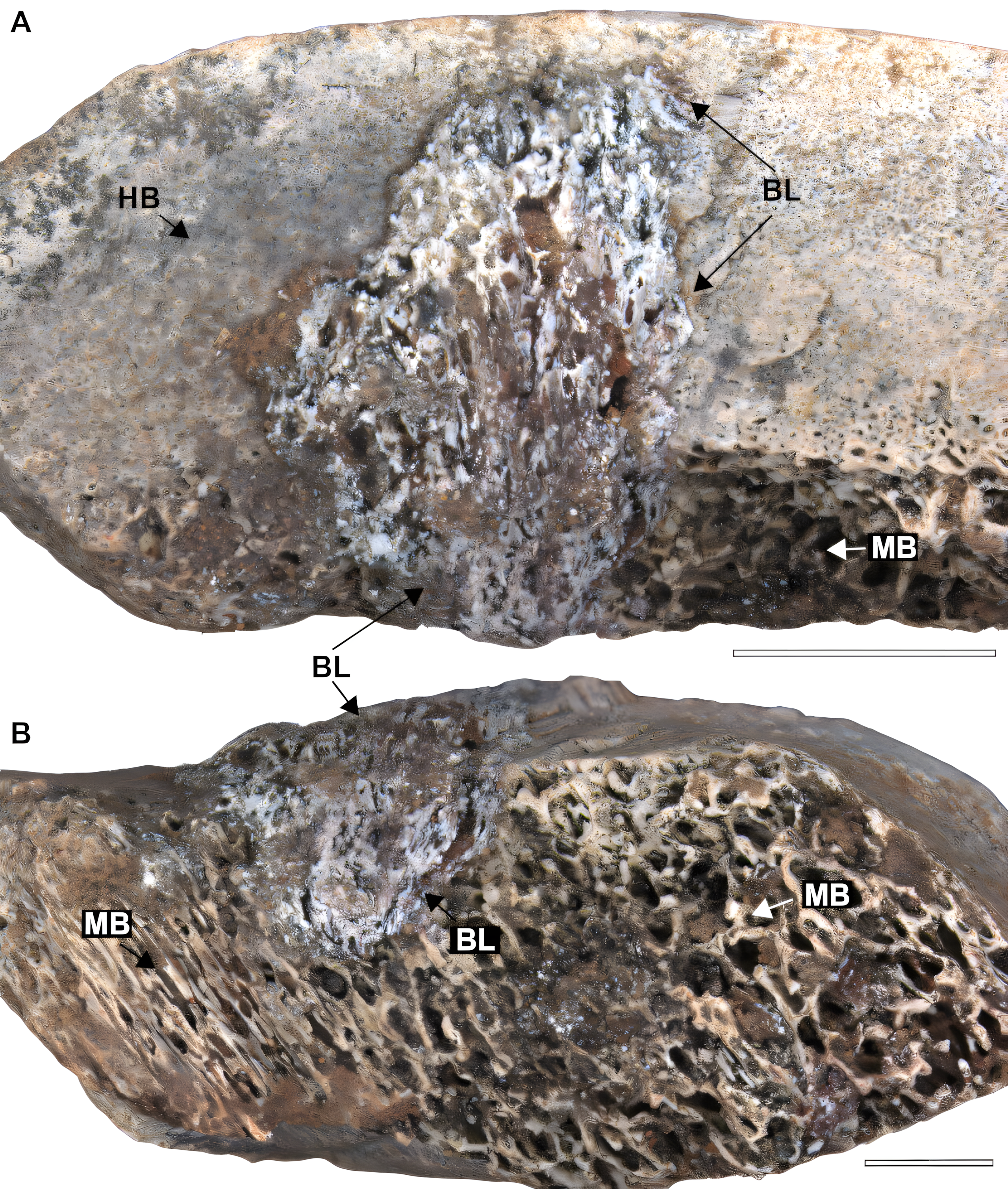 2006년에서 2023년 사이 바카 모르타 유적Vaca Morta site에서 발견된 다른 뼈들은 골수에서 바깥쪽으로 확장된 병변을 지닌다.