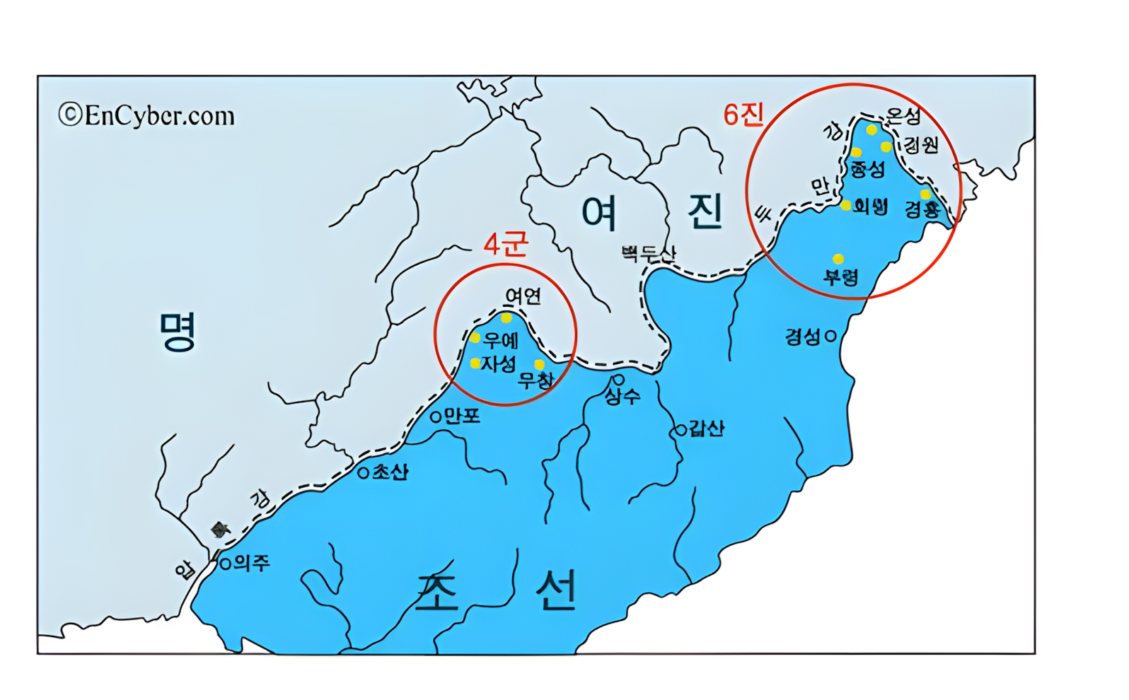 우리는 흔히 사군육진이라 해서 두반강쪽이랑 강계 중강진 쪽에 동글배기 각각 하나씩 두 개를 치는 일로 그치지만, 그가 식민주의 팽창주의로 개척한 땅이 진짜 그 동글배기라고 생각하는가?