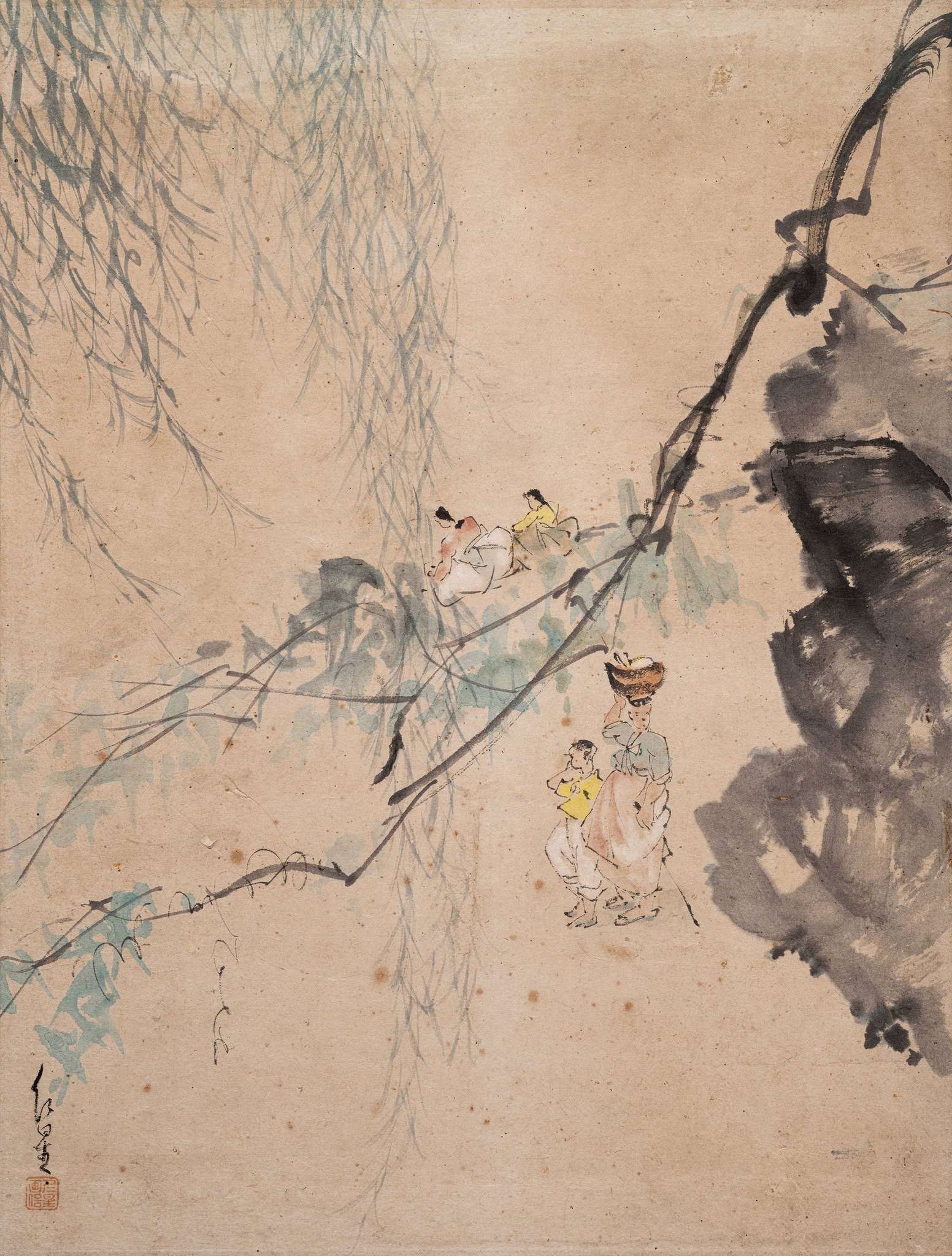 〈무제〉도 그의 이러한 수묵담채화로, 버드나무 아래의 유하(柳下) 구도에 뱃놀이하고 빨래하는 봄의 풍류와 풍속을 그린 것입니다.