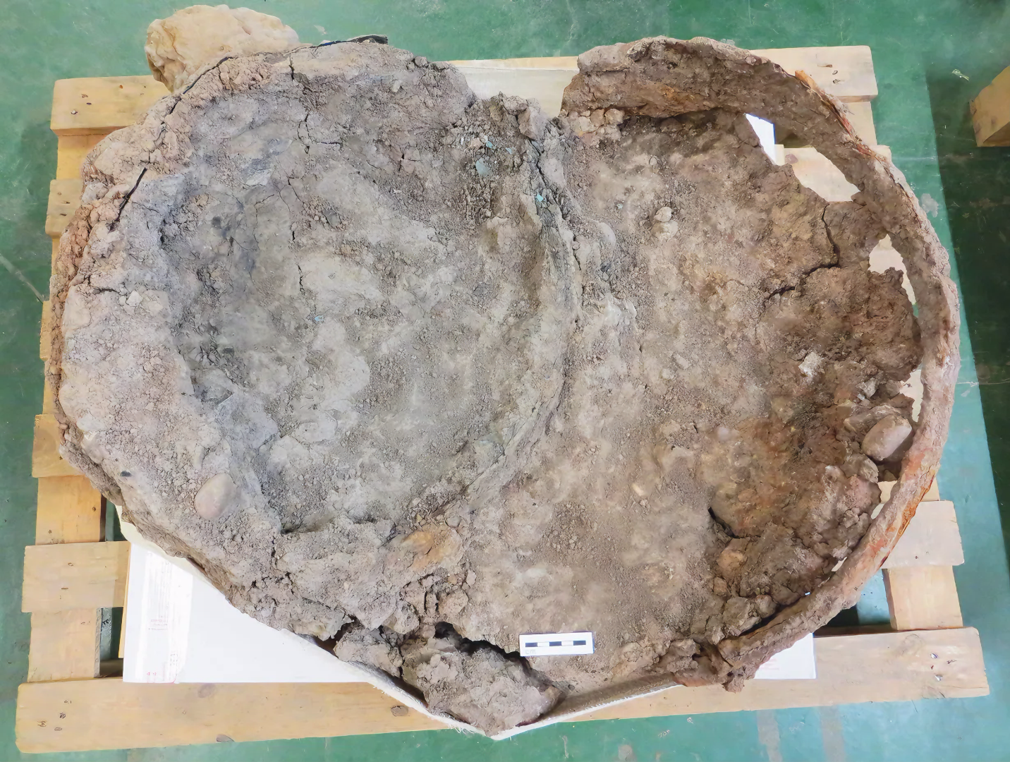 이 가마솥들은 매우 취약한 상태로 발견되었으며, 추후 분석을 위해 발굴 현장에서 흙 블록 형태로 인양했다. [통째로 떴다는 뜻이다.]