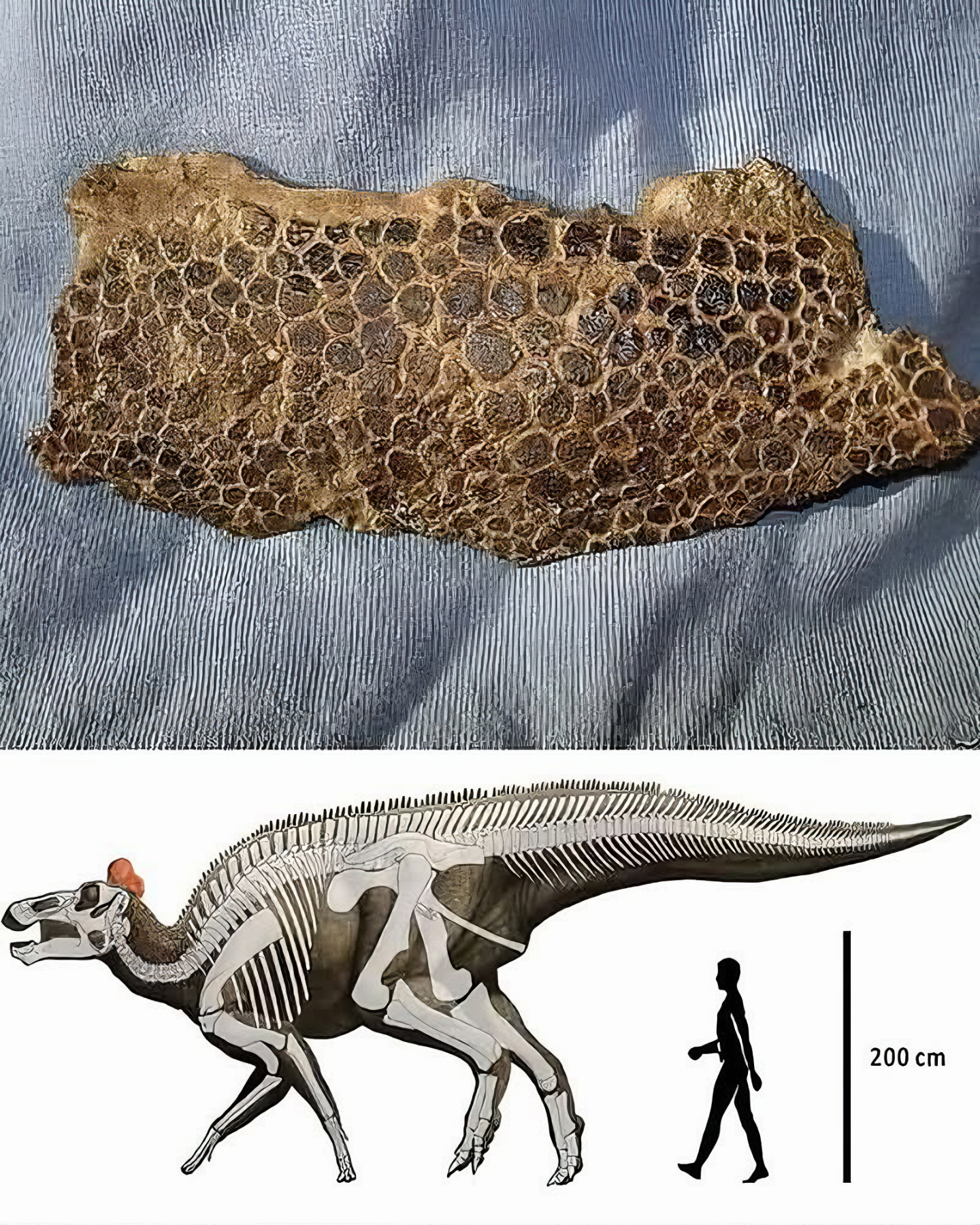 이 놀라운 화석은 육각형으로 배열된 비늘을 잘 보존해 고대 초식공룡 피부 질감과 외형에 대한 귀중한 정보를 제공한다.