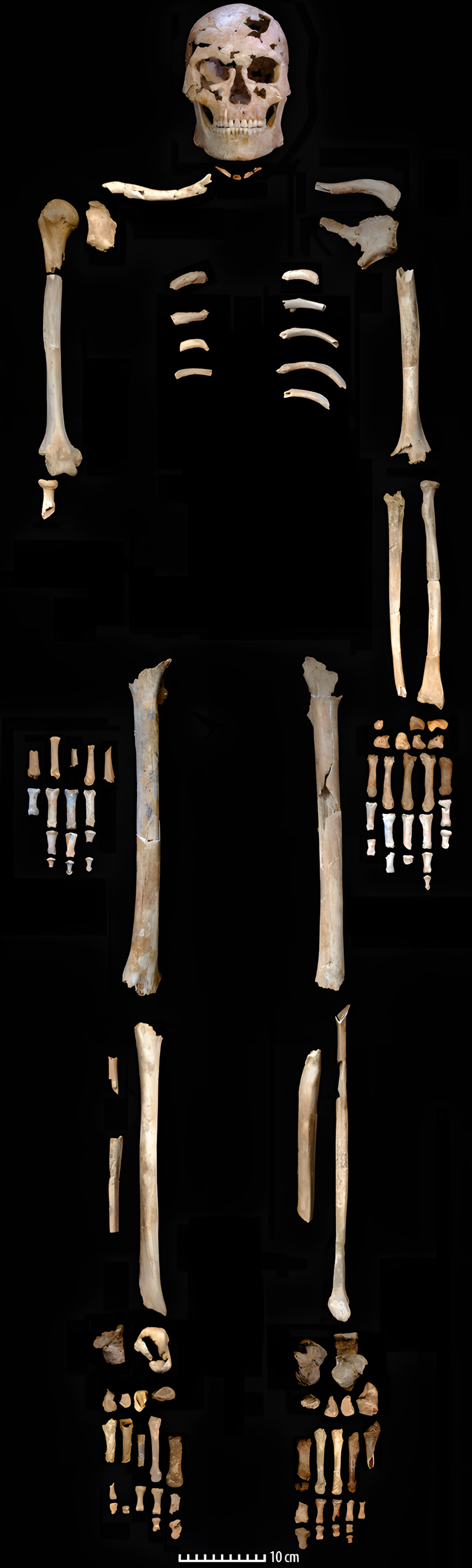 남은 인골 Elements of TBH1 in anatomical position. Scale: 10 cm. Photographs: C. M. Stimpson; reconstruction: A. Wilshaw.