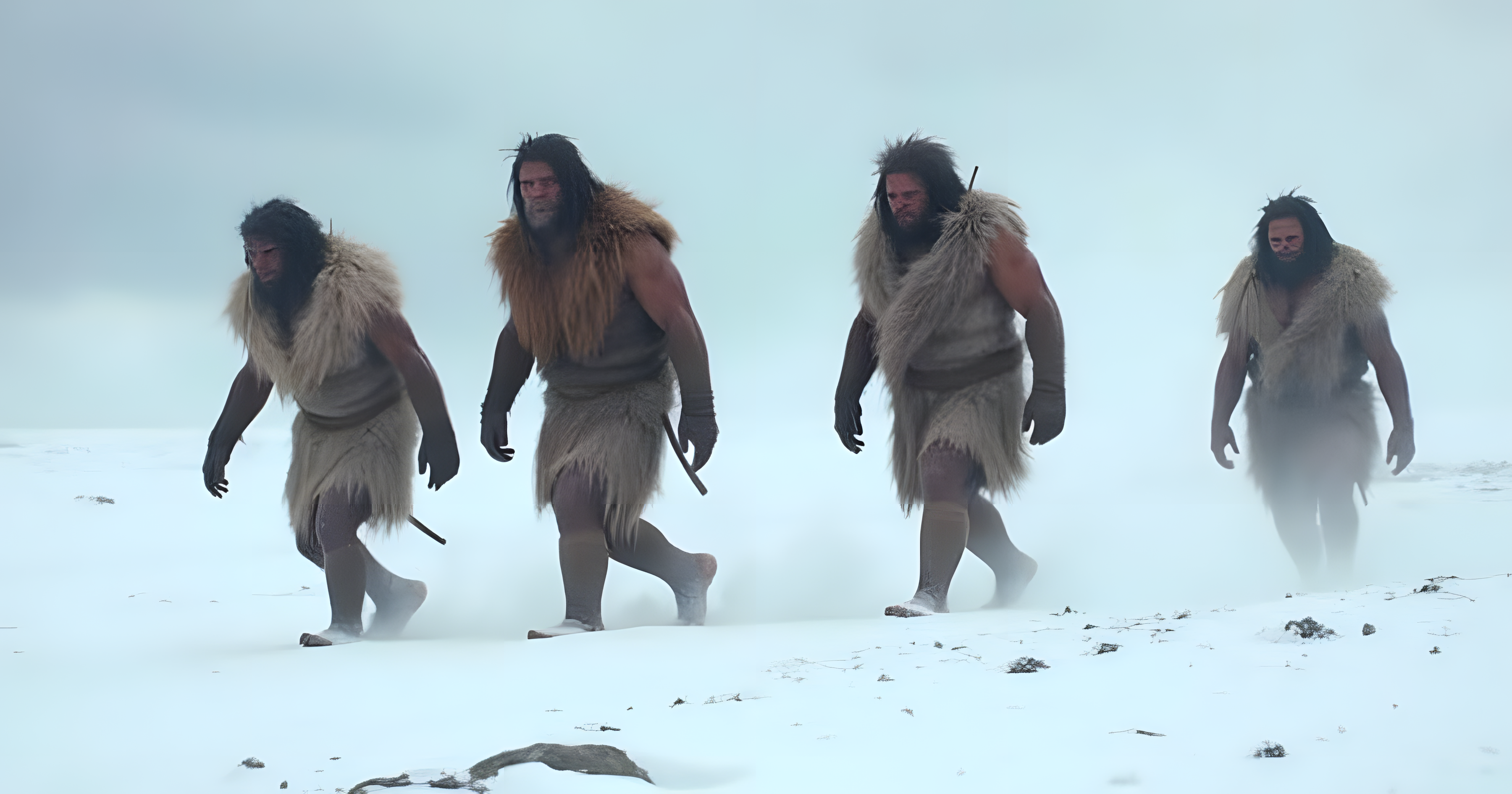 영국에서 혹독한 빙하기 환경에서 살아남은 초기 인류. 출처: AI 생성