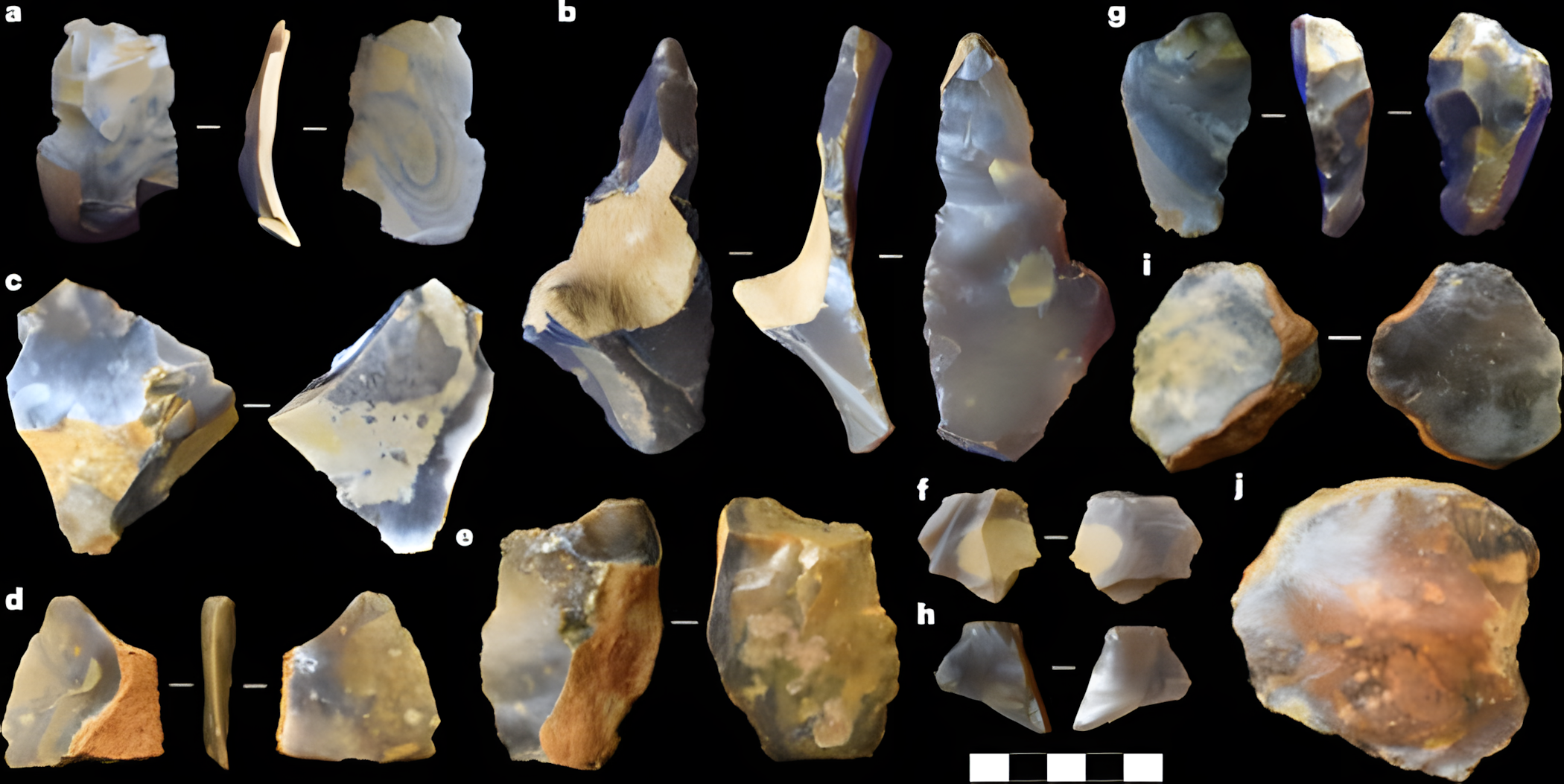 약 44만 년 전의 강자갈과 모래 사이에 날카로운 플린트 도구가 봉인되어 발견되었다.