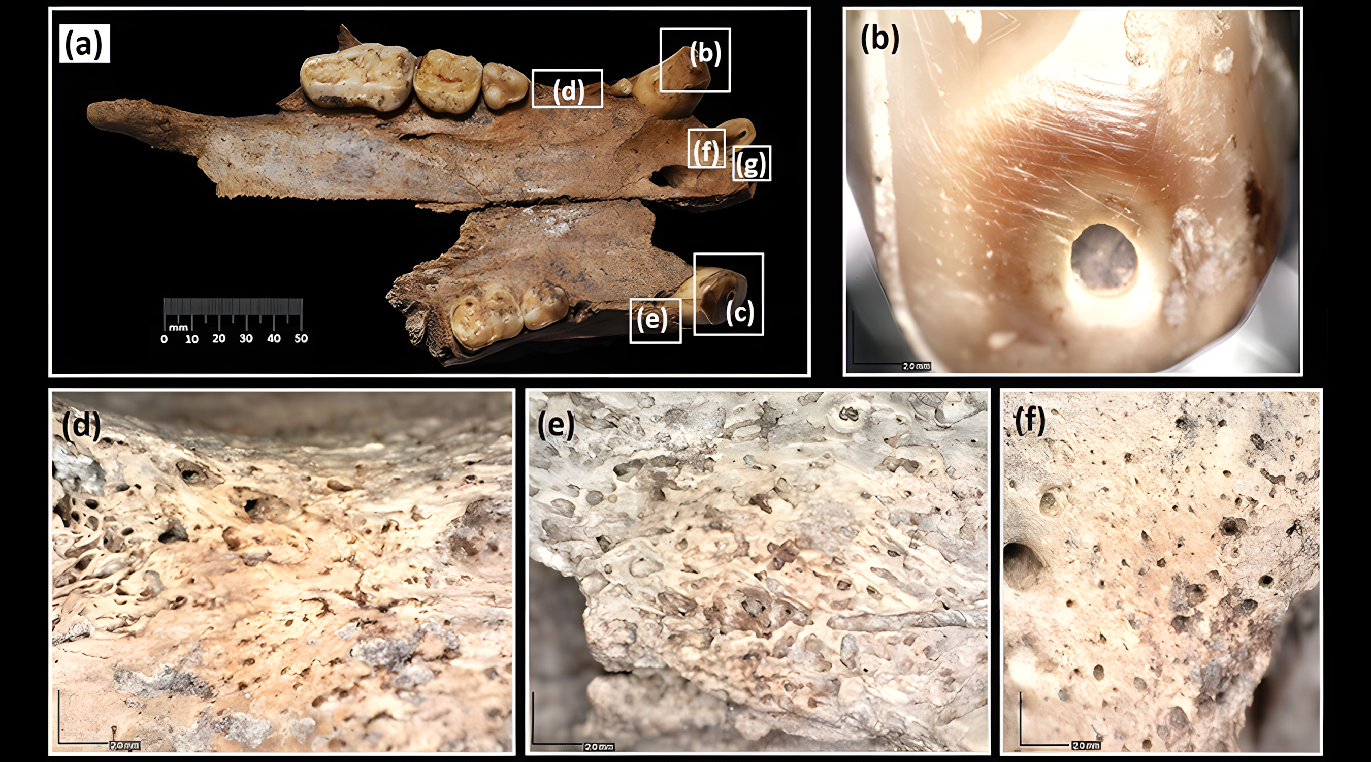 곰의 턱에서도 감염 흔적이 발견되었고, 연구진은 송곳니에서 비정상적인 마모를 확인했다.