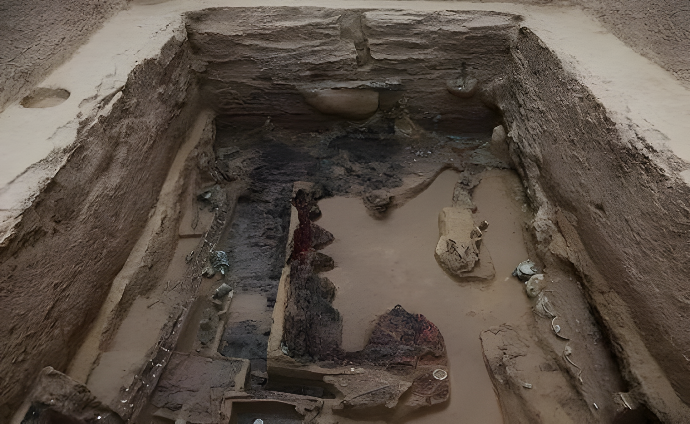 "中"자형 대묘 북서부에는 각각 남북 방향 수레와 말 구덩이가 있다.