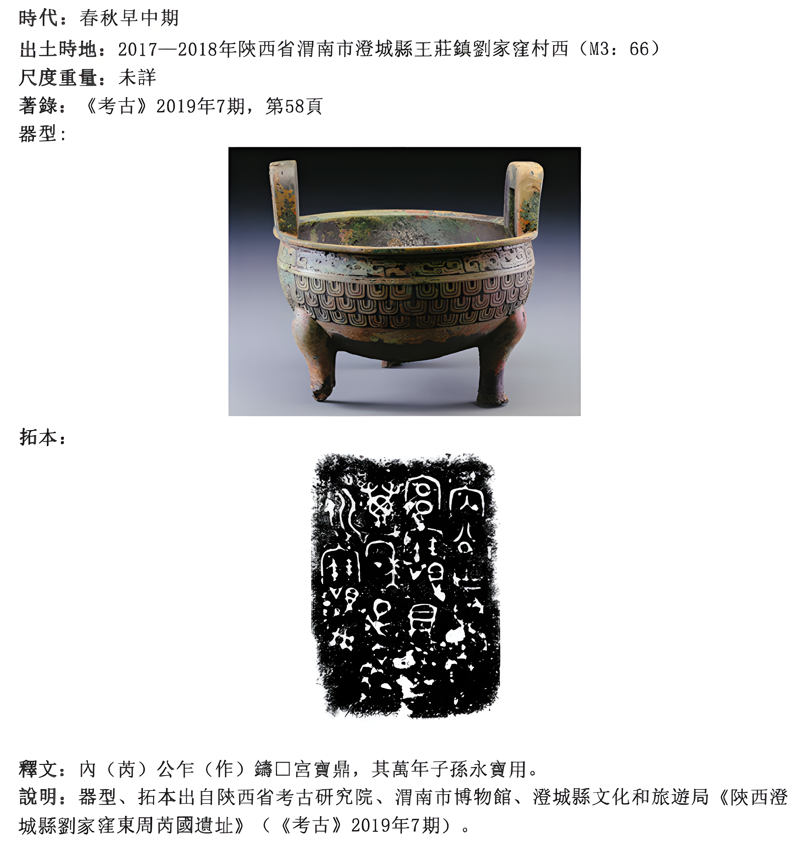 당시만 해도 이곳이 섬서陕西 징성澄城 유가와刘家洼 동주东周 유지遗址로 보고된 듯, 2019년 4월 3일 중국사회과학원 홈페이지가 공개한 아티클을 대본으로 삼는다.