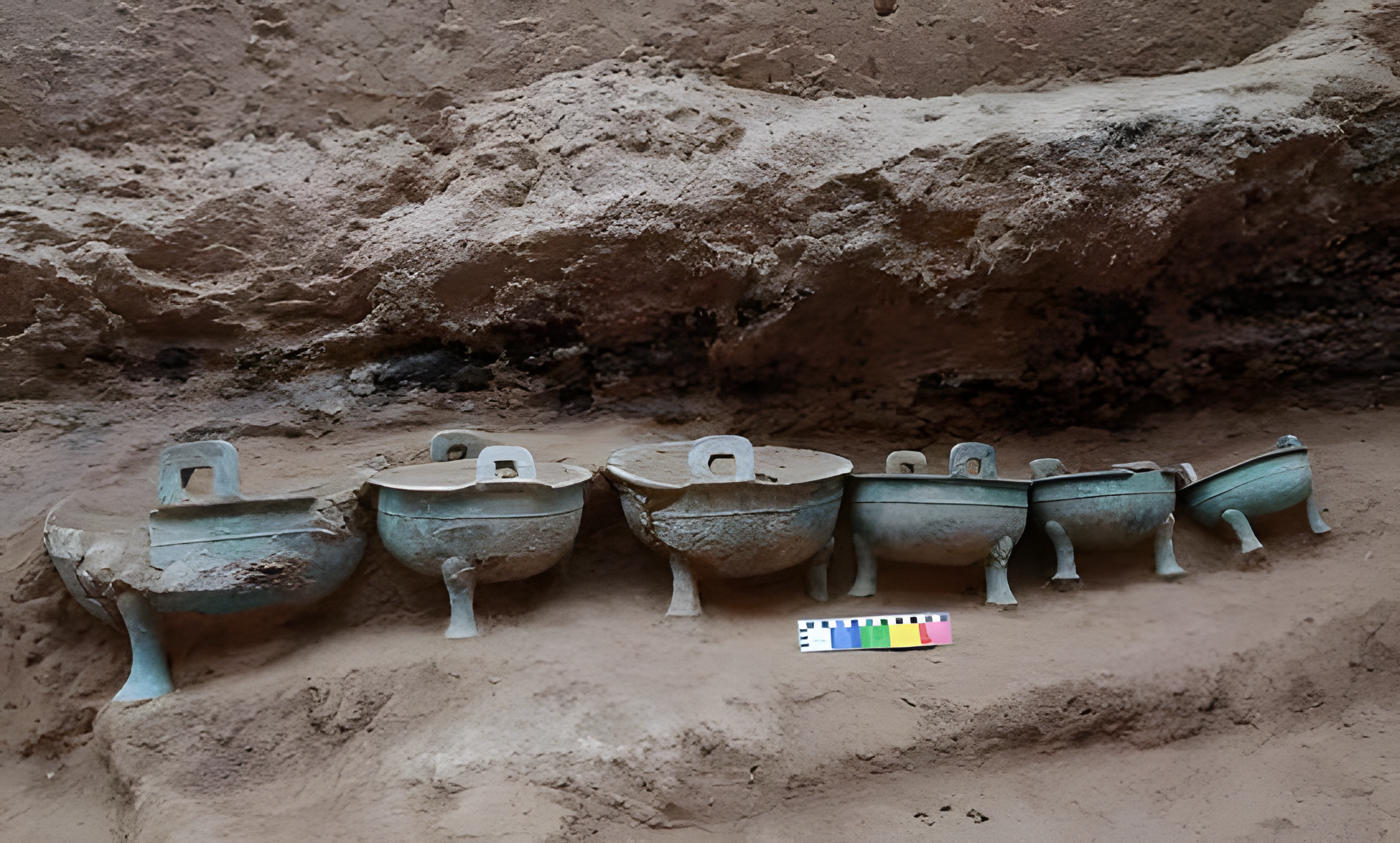 청동기 예기礼器는 7정鼎 6궤簋, 5정 4궤 등의 조합 형식이 있으며 예공芮公, 예태자芮太子 등의 청동기 명문을 종합적으로 분석한 결과, 이곳은 예국芮国 후기 도성 유적과 그 묘지로 보인다.