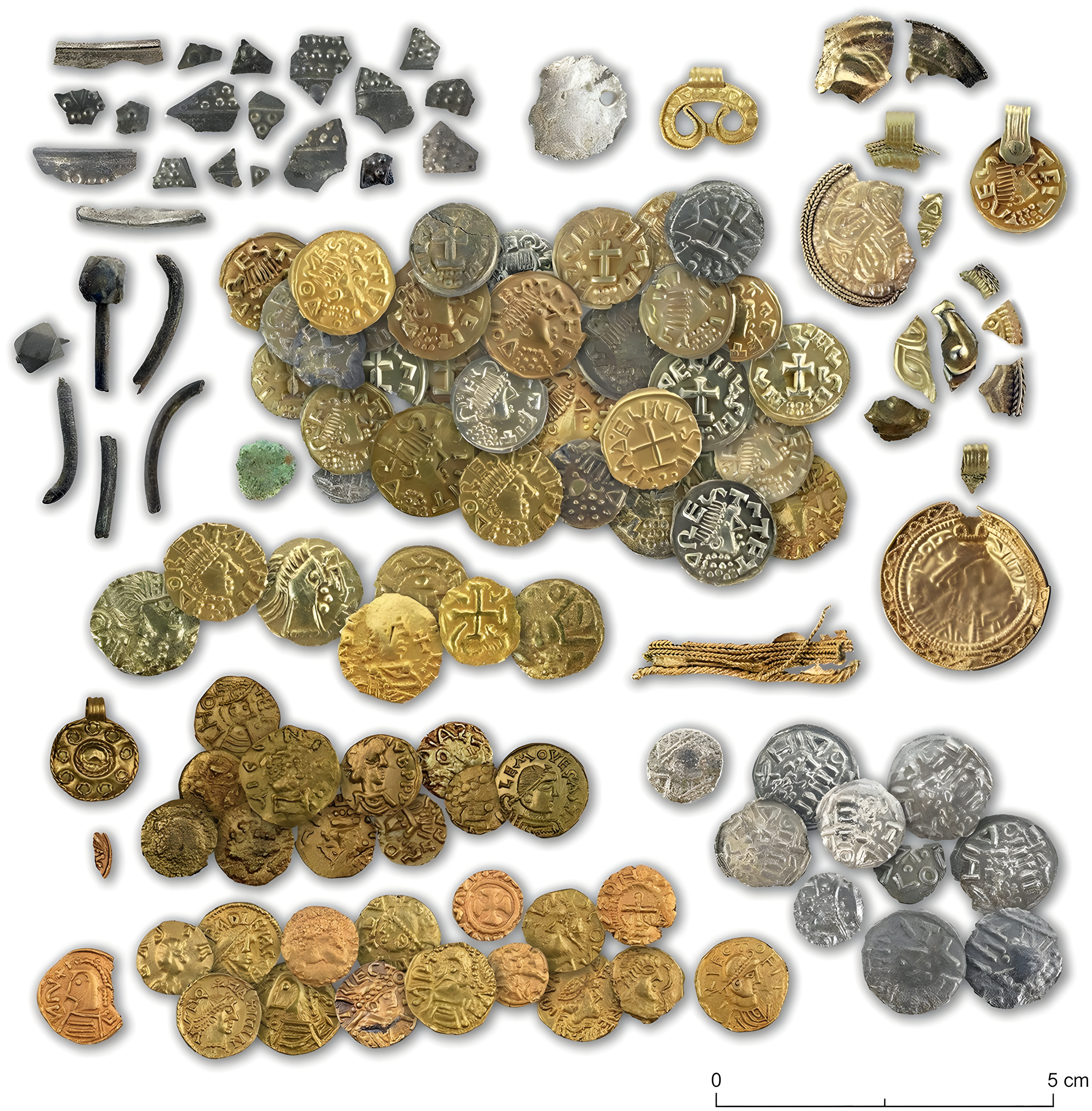 고고학자들은 약 40미터 길이, 15미터 너비 지역에서 200점 이상 유물을 발견했는데, 대부분 금화(트레미스tremisses), 스키타sceattas (중세 초기 은화), 그리고 정교한 펜던트였다.
