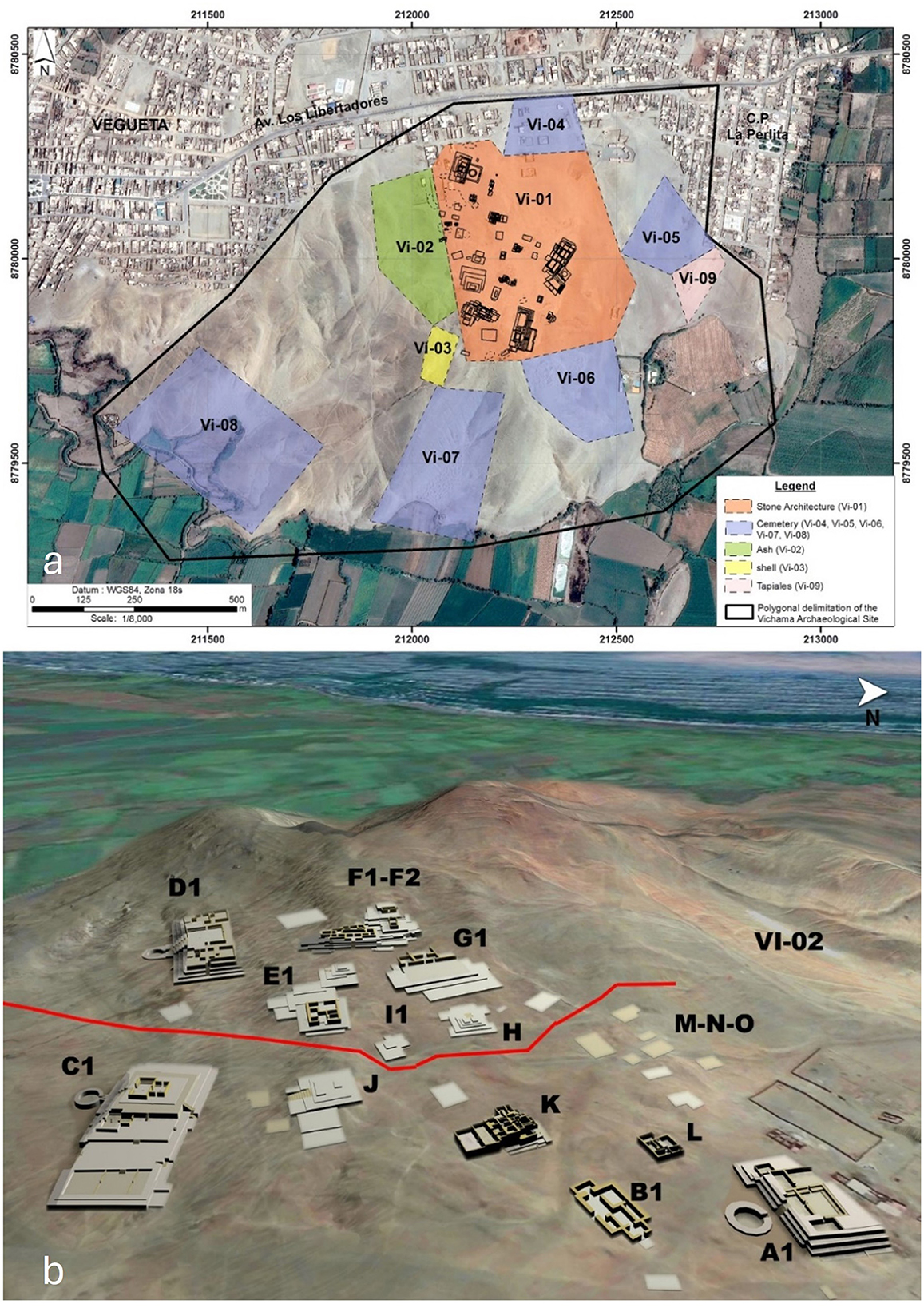 현대 도시 베게타Végueta에서 북쪽으로 약 130km 떨어진 비차마Vichama는 와우라 계곡Huaura Valley 하류 바로 외곽에 위치하며, 태평양에서 불과 1.5km, 하구에서 북서쪽으로 약 6.5km 떨어져 있다.