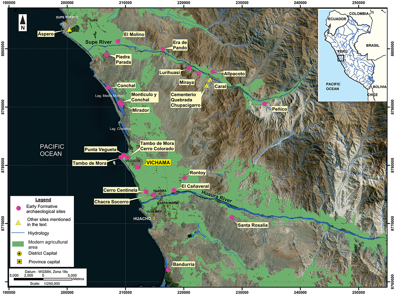 현재의 증거는 가장 생산적인 해양 생태계 중 하나와 주변 환경의 극심한 건조함에도 불구하고 농업이 초기 안데스 문명의 주요 동력이었음을 시사한다.