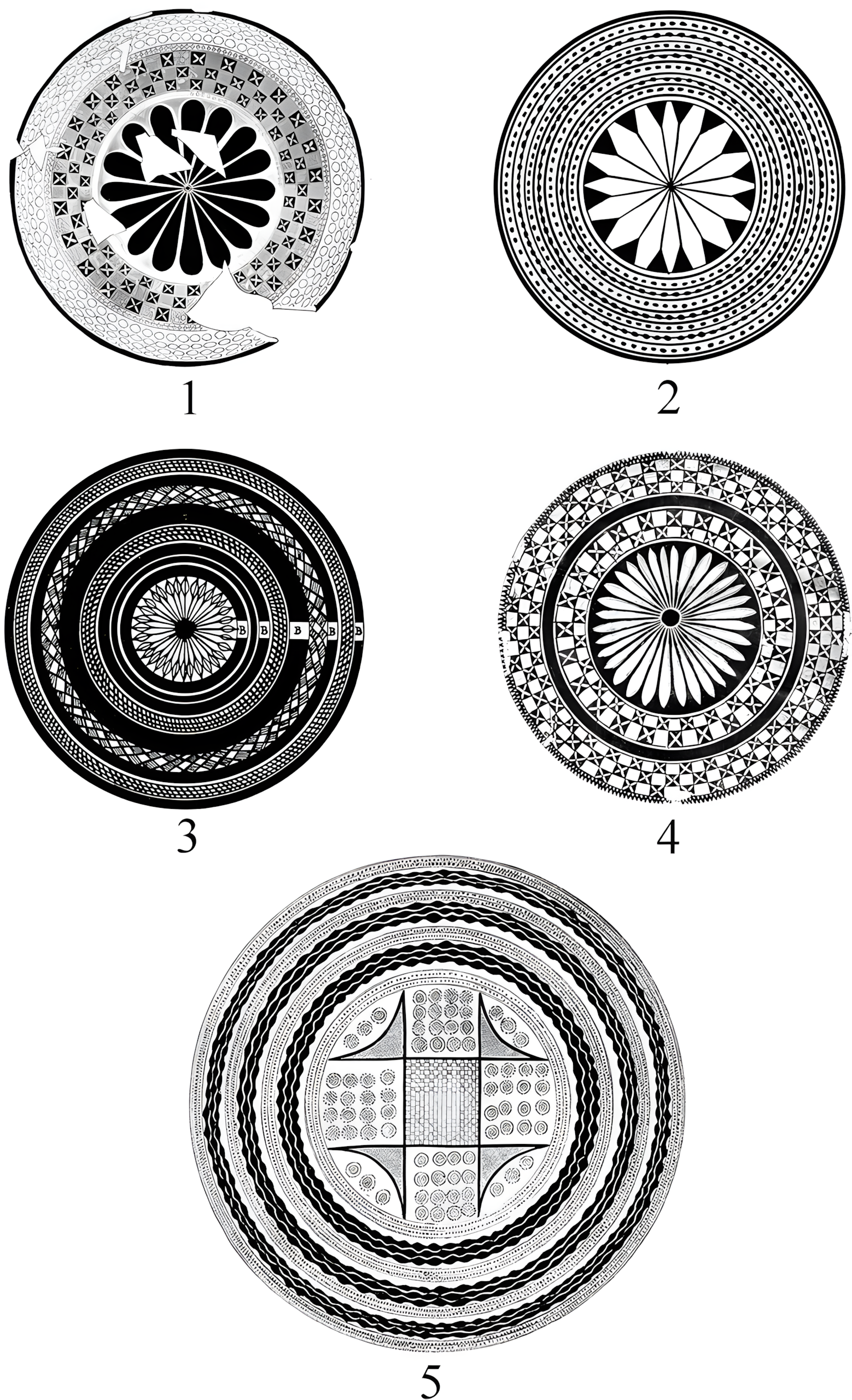많은 도기에는 꽃잎이 기하학적 순서, 즉 4개, 8개, 16개, 32개, 심지어는 64개로 배열된 꽃이 묘사된다.