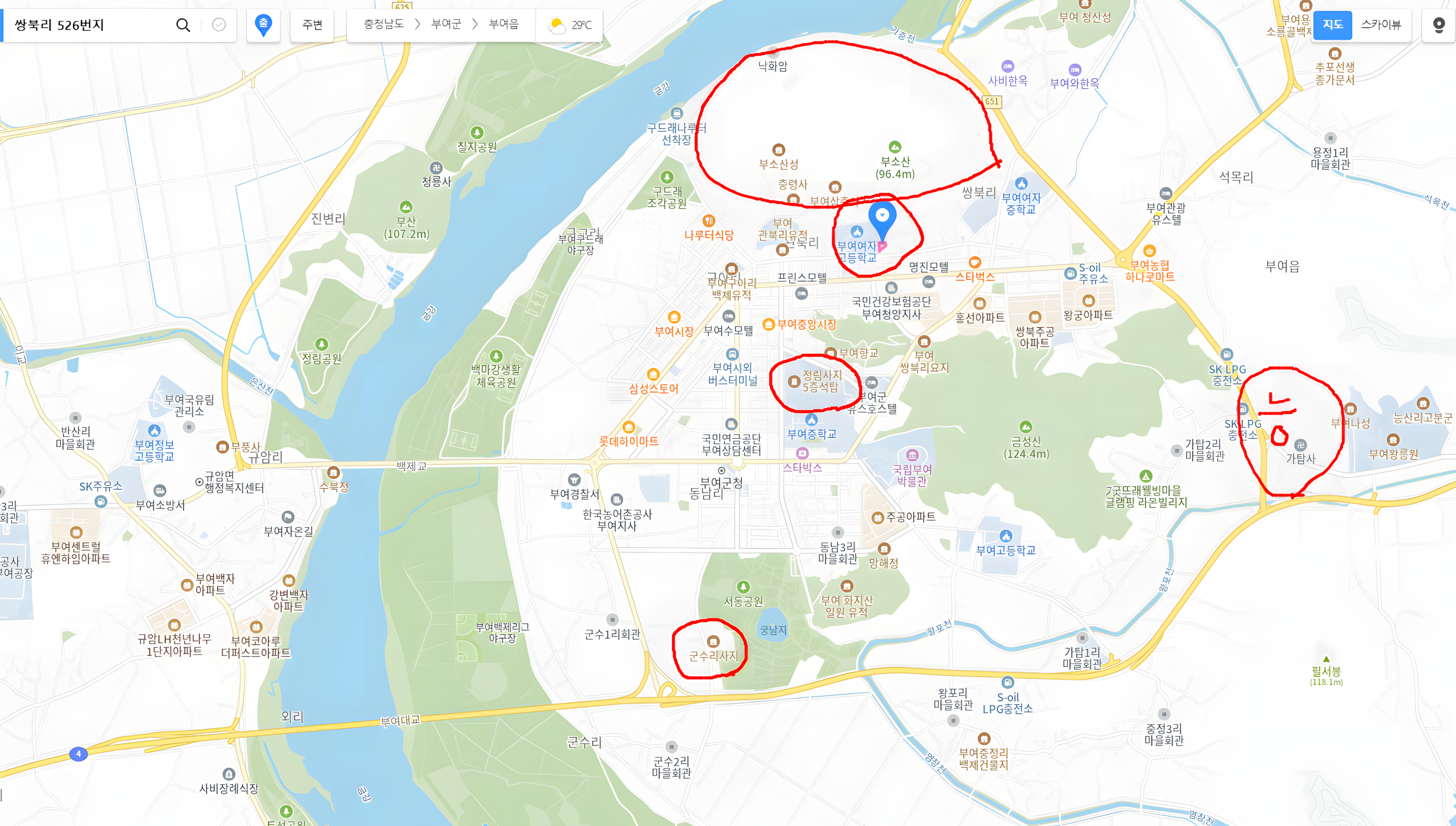 진짜로 정림사지를 중심으로 그 주변이 왕경 핵심구역이 맞다면 저 구역에는 절이 무수하게 있어야 한다. 하지만 꼴랑 두어 군데 흔적을 드러냈을 뿐이다.