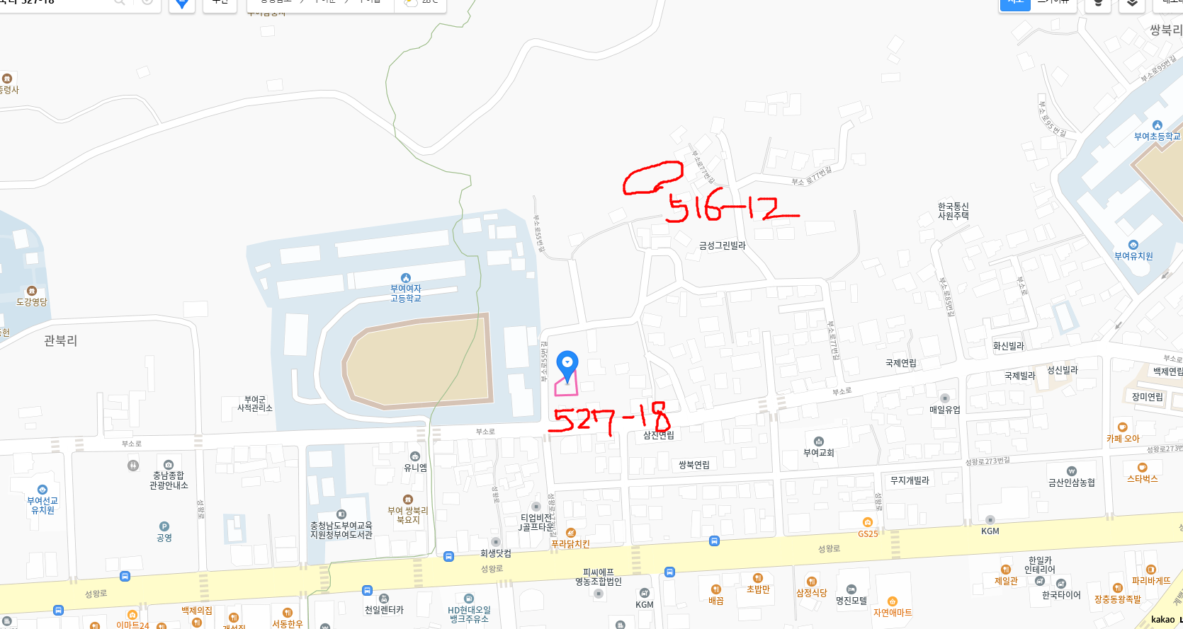 곧 소조불 파편이 나온 지점은 부여읍 쌍북리 527-18인데 견주어 문제의 성토층이 확인된 곳은 쌍북리 516-12다.