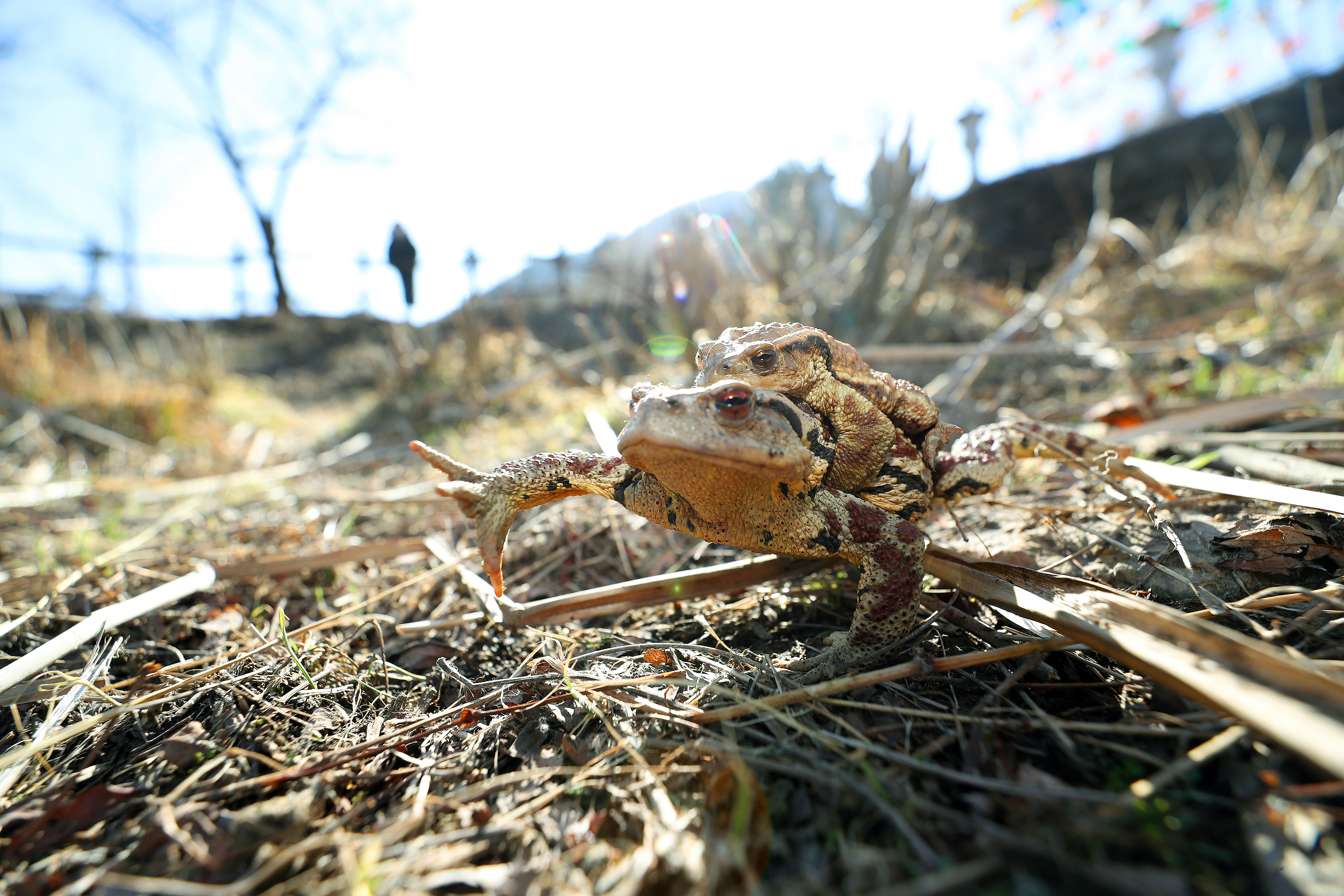 These toads came down the mountain in groups and started heading to Mangwolji ahead of spring this year.