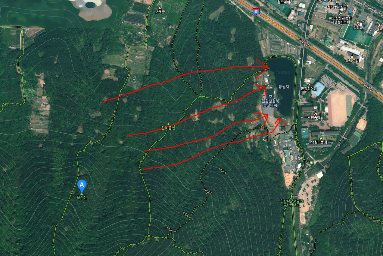 At the northeast foot of this mountain is a pond called Mangwolji. As of 2021, this reservoir, which covers an area of about 2 and a half football fields (18,904㎡), is known to have naturally formed in the 1920s.