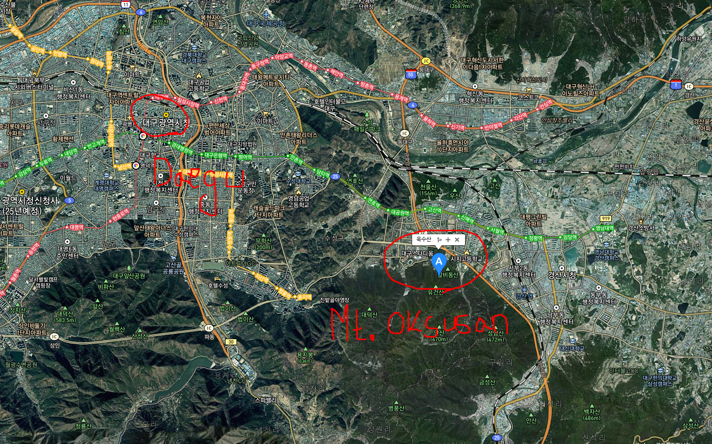 In Daegu, a metropolitan city in the southeastern part of the Korean peninsula, about 240 kilometers southeast of Seoul, there is a not very high mountain called Mt. Uksusan, which is 292 meters above sea level.