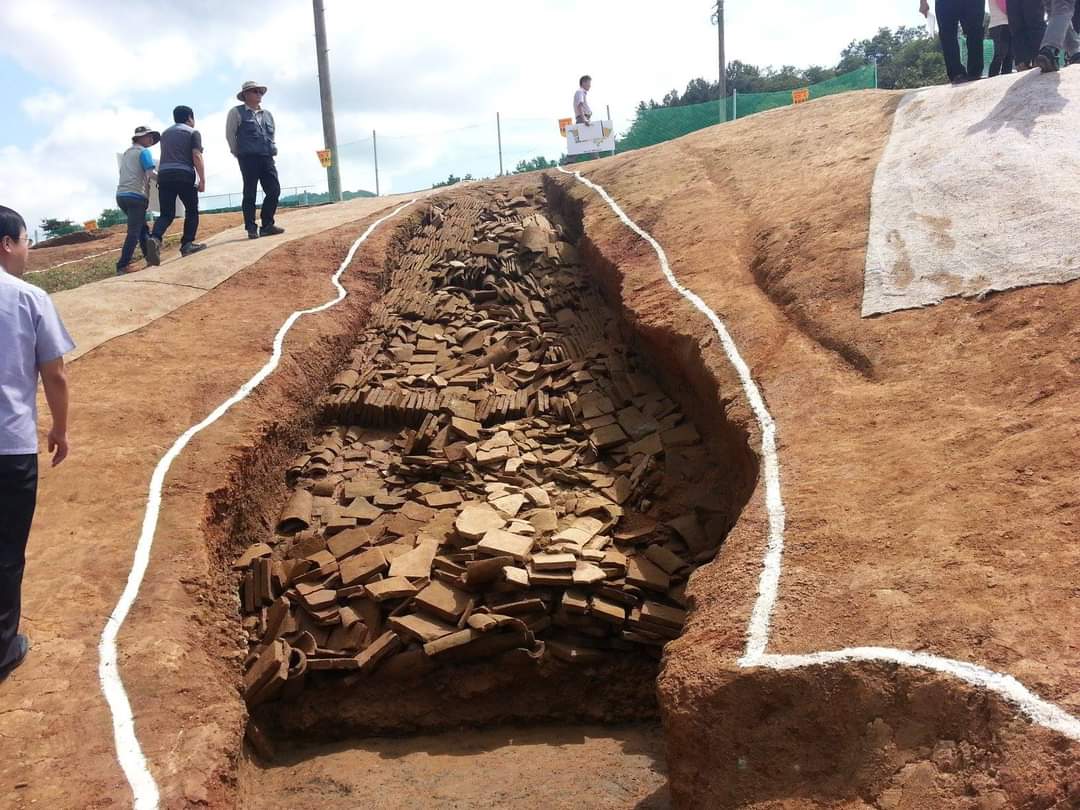 충주 호암택지개발지구에서 드러난 조선시대 폭싹 기와가마다.