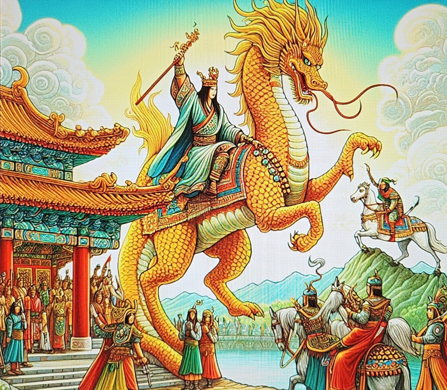 "(왕께서) 세상의 자리(왕위)를 즐기지 않으시니 (하늘이) 黃龍을 보내어 내려와서 왕을 맞이하였다. 왕께서는 홀본忽本 동쪽 언덕에서 용 머리를 발로 딛고 하늘로 올라가셨다[不樂世位, 因遣黃龍來下迎王, 王於忽本東[岡], 履龍首昇天]."