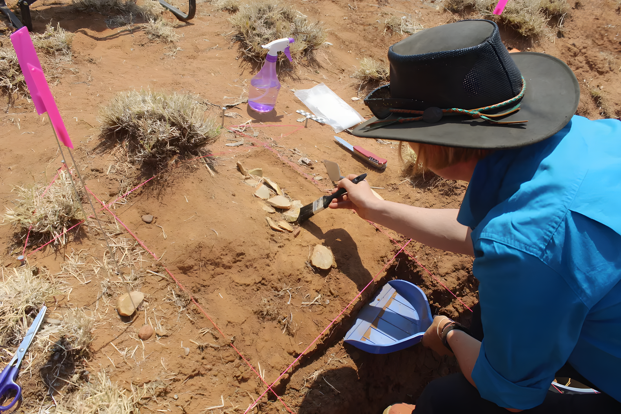 호주 오지에서 고고학자들이 수십 점 석기 도구 무더기를 발견했다.