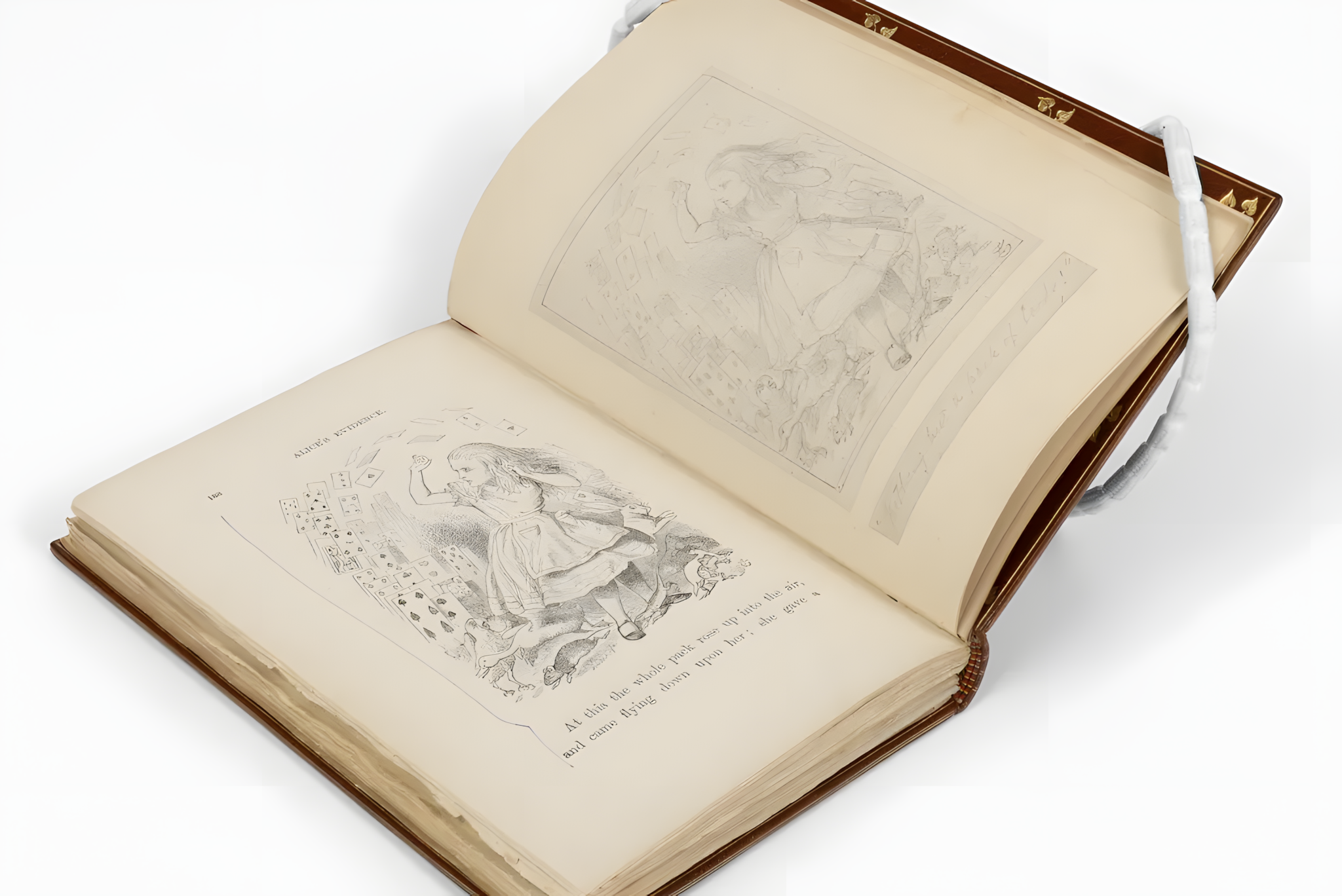 이 책에는 영국 삽화가 존 테니얼John Tenniel이 그린 캐럴 등장인물 오리지널 연필 스케치 42점 중 10점도 포함한다.