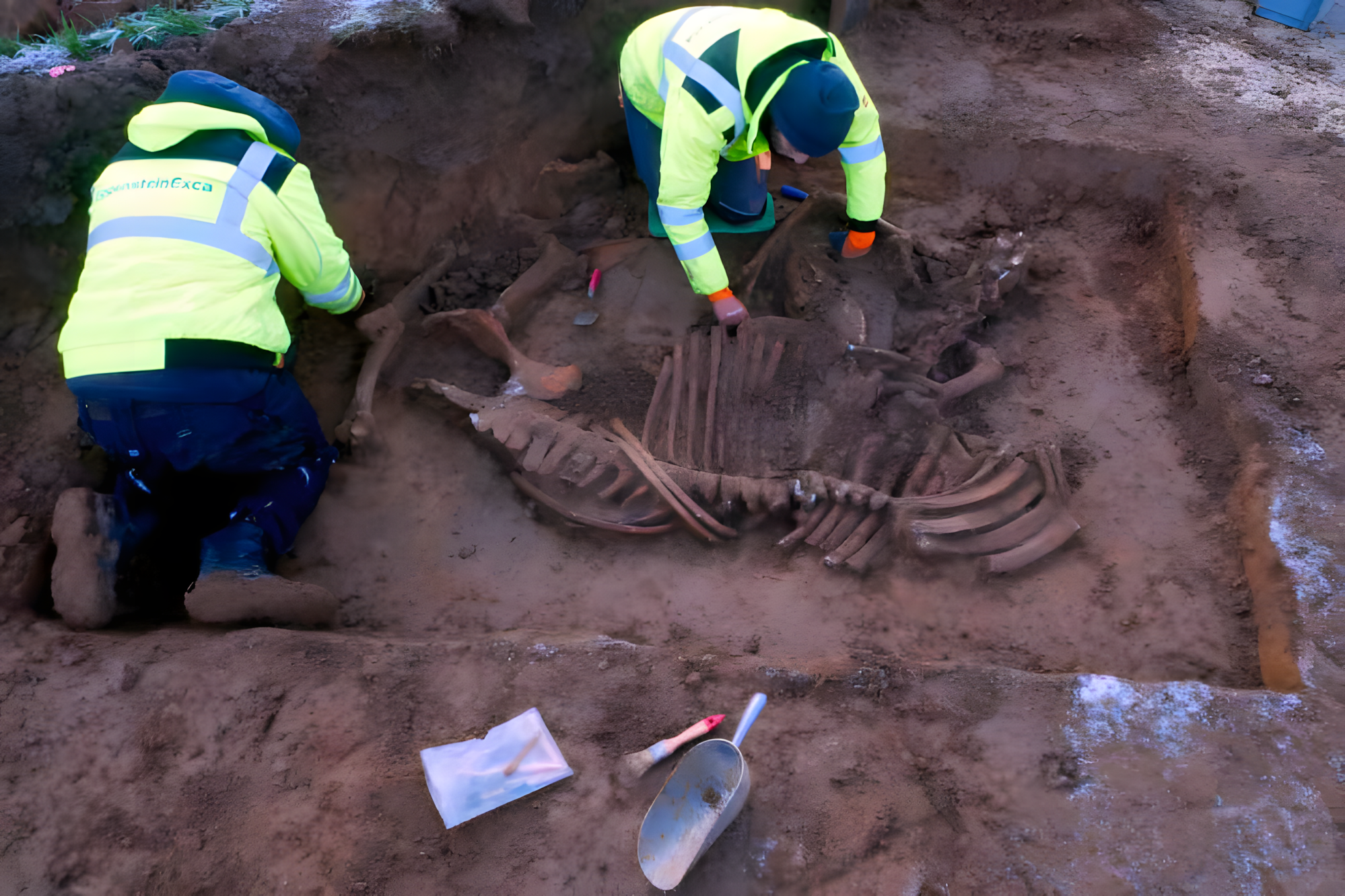 발굴 과정에서 동물 골격도 발견되었다. 사진 제공: 도르트문트 시 / 발굴 회사 에겐슈타인엑스카