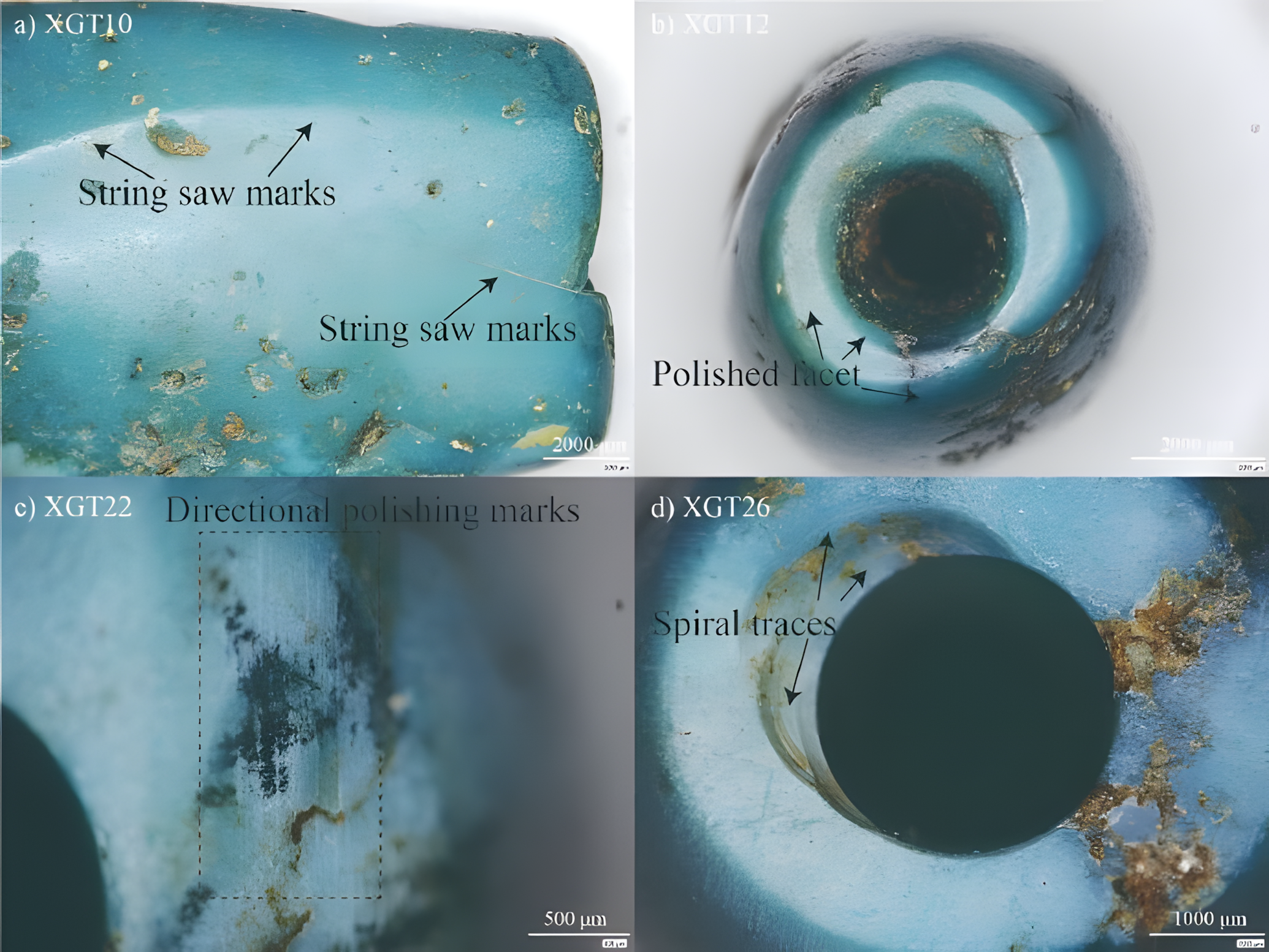 대타두 문화 묘지에서 28점 녹송석绿松石[터키석] 제품이 발굴되었으며, 회전식 굴착旋转钻孔과 같은 복잡한 기술적 흔적이 확인되어 광물 기원과 지리적 출처가 밝혀졌으며, 고대 중국 물질 문화 교류사를 재구성하는 데 중요한 증거를 제공한다.