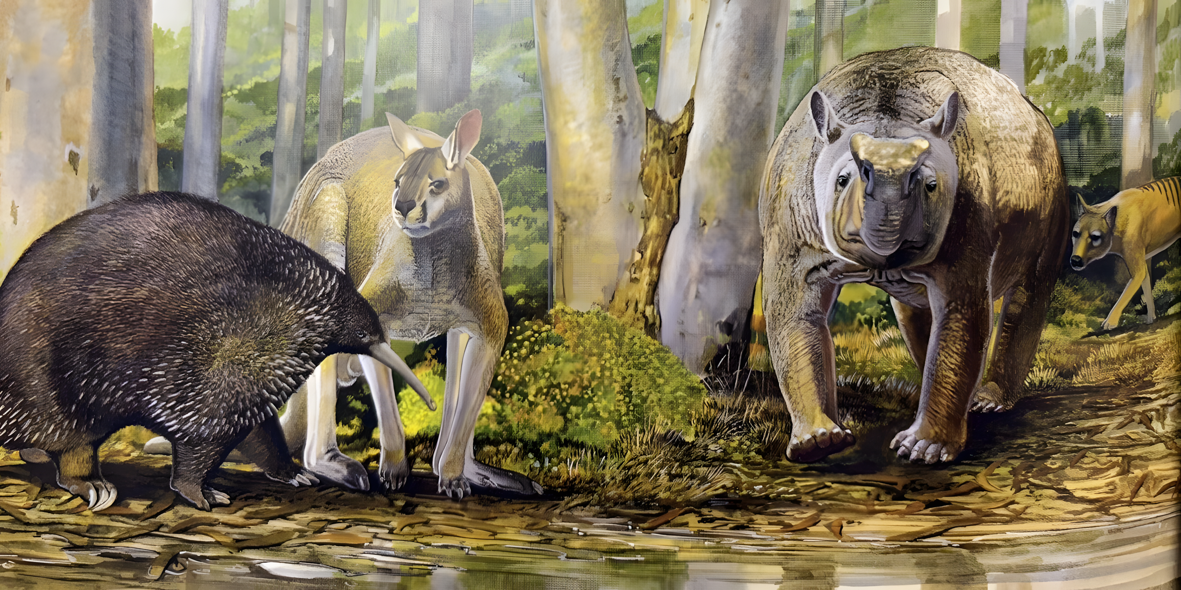 수만 년 전, 호주에는 거대 유대류 웜뱃marsupial wombats, 날지 못하는 새flightless birds, 스테누린sthenurines으로 알려진 짧은 얼굴 거대 캥거루short-faced giant kangaroos와 같은 불가사의한 거대동물군megafauna이 여전히 서식하고 있었다.