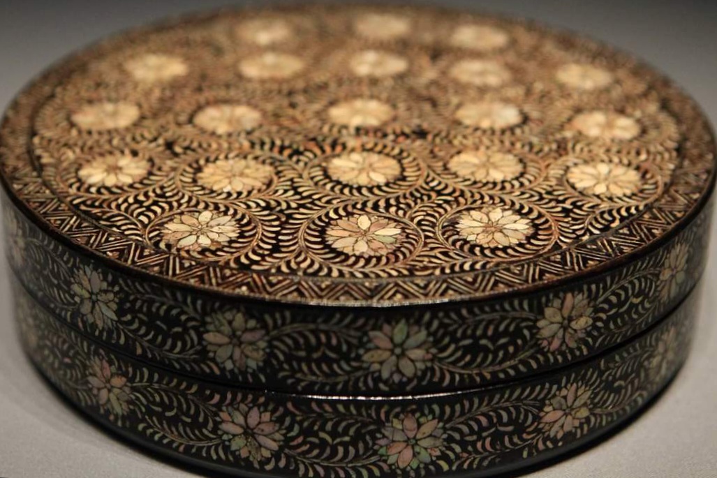 도쿄박물관 소장 고려말~조선초 나전 국당초문 원형함인데 지금 세밀가귀전에 출품 중이다.