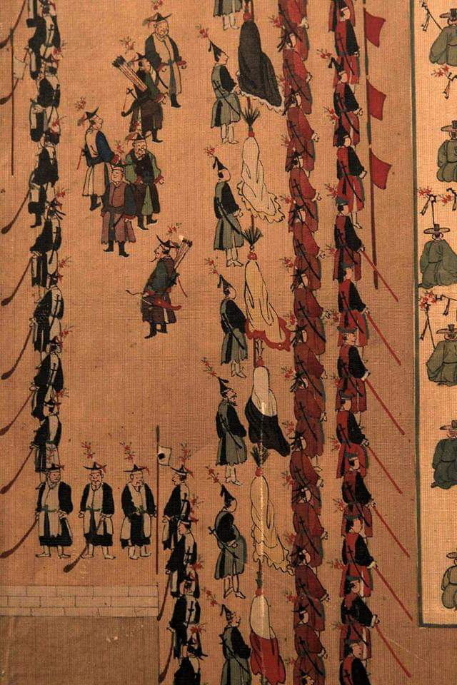 리움 소장 화성능행도 8폭 병풍 전체와 세부다. 김득신 등이 그렸다.
