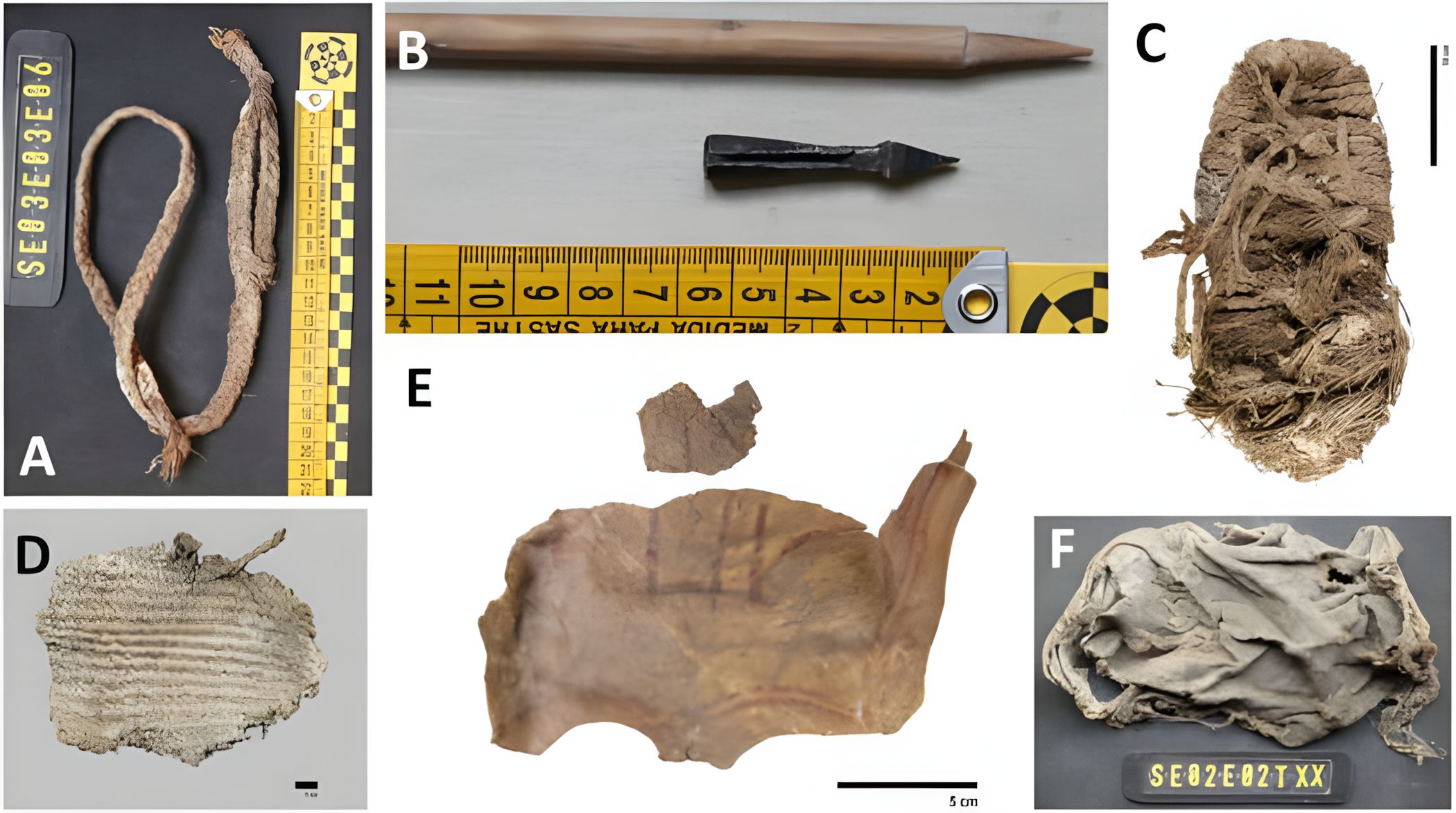 가장 놀라운 발견으로는 방사성 탄소 연대 측정 결과 674년 전인 13세기 후반 것으로 추정되는 에스파르토 풀esparto grass 끈으로 만든 완전한 샌들이 있다.