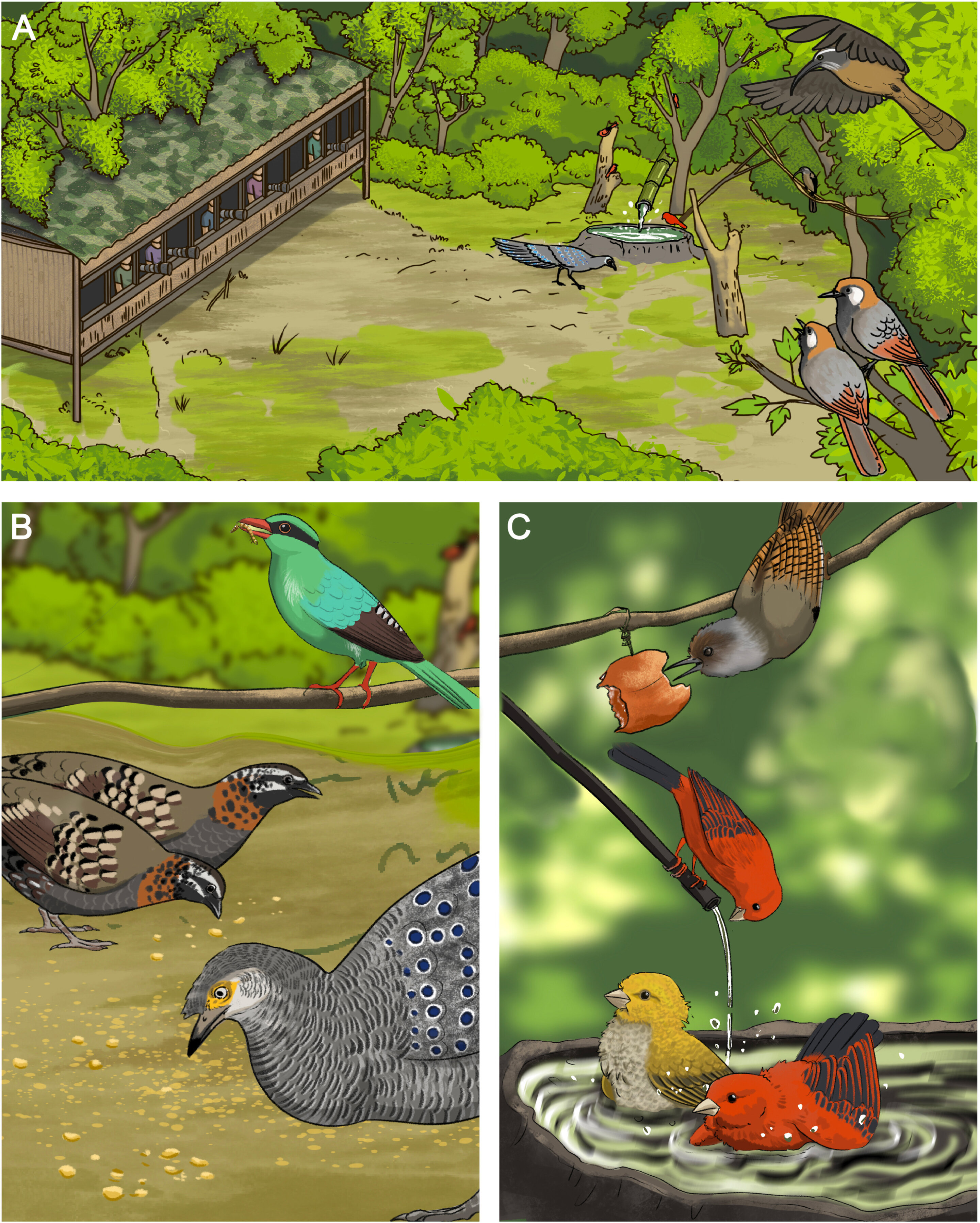 조류 연구Avian Research에 발표된 한 연구에 따르면, 지역 사회가 인공 연못과 먹이 공급소를 설치하여 조류를 유인하고 비침습적인 방식으로 관찰 및 사진 촬영을 할 수 있도록 하는 지역 사회 기반 풀뿌리 조류 관광 사업인 'Hide-in-Bird Pond (HIBP)' 모델이 중국 전역에서 빠르게 확산하는 있는 것으로 나타났다.