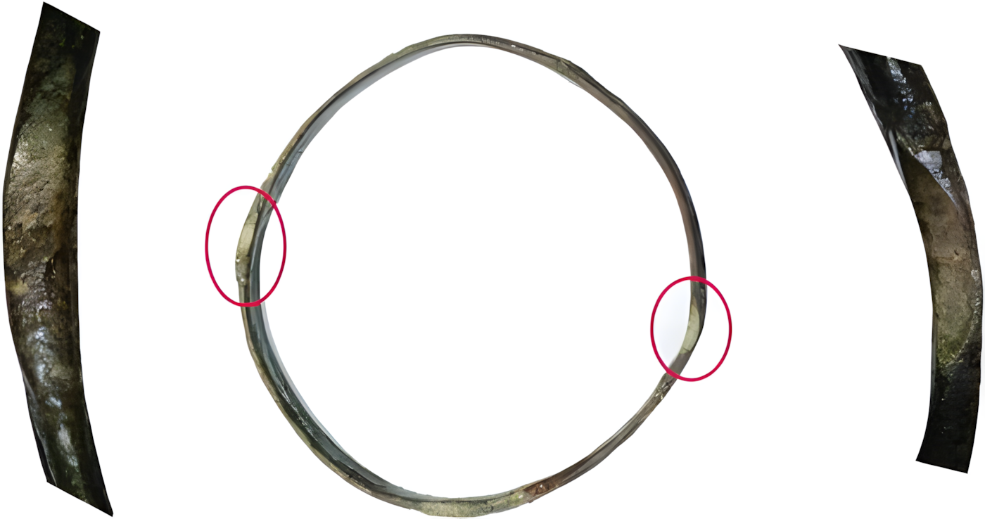 팔찌 양쪽에 위치한 두 개 특정 불규칙성은 주조 후 주형sprue (금속을 부을 수 있는 통로)과 통풍구vent (공기 배출구)가 제거된 지점으로 해석되었다.